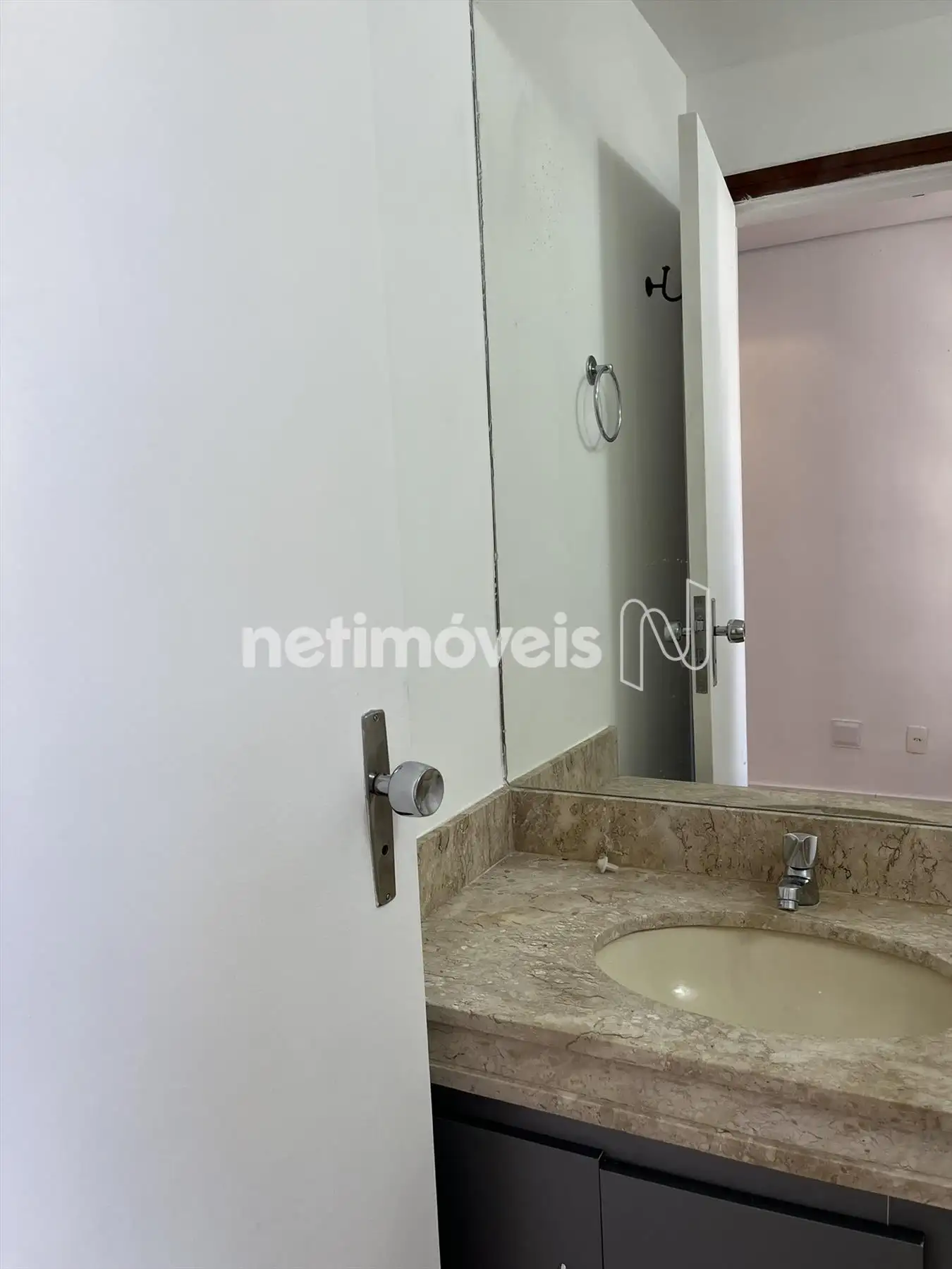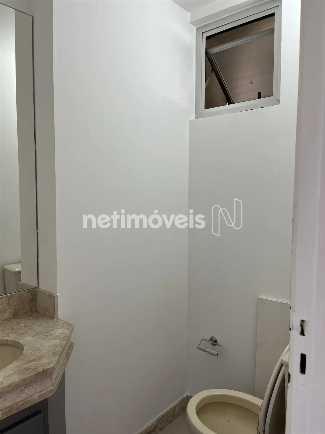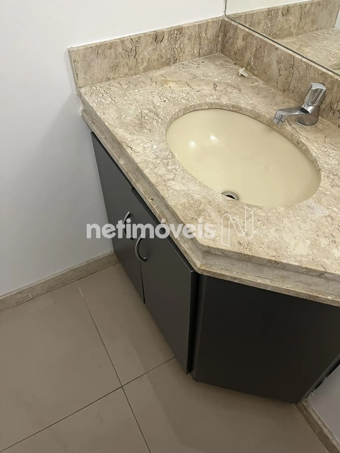 - Banheiro com bancada em mármore, piso em cerâmica.