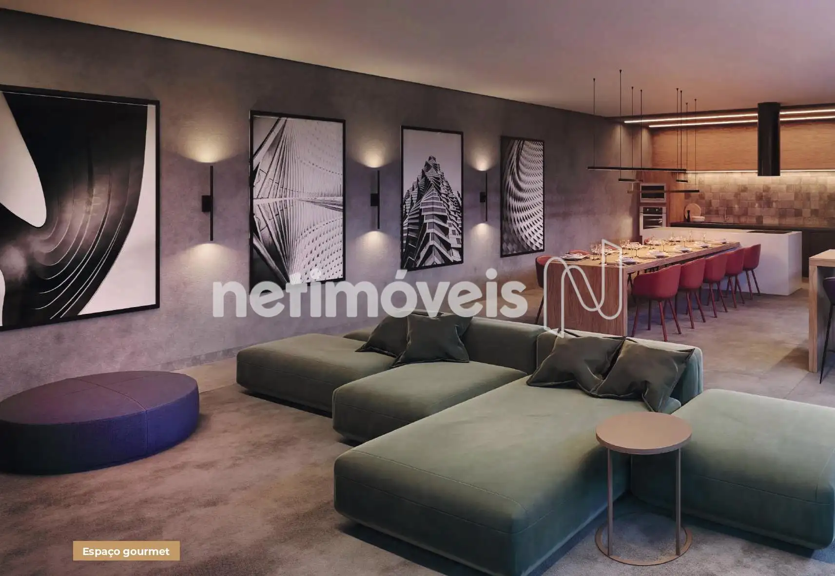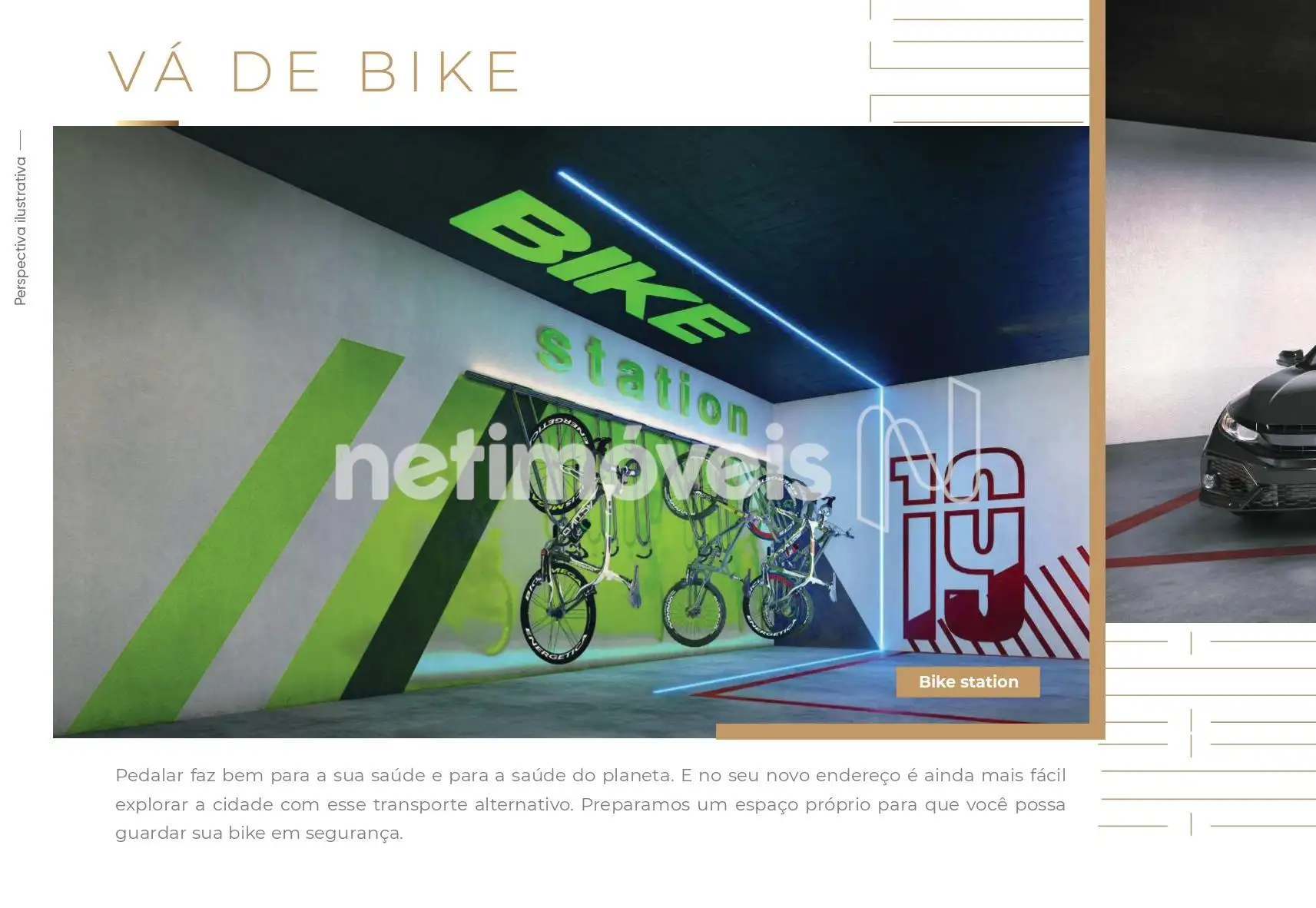 Condomínio com espaço gourmet, espaço fitness, piscina, coworking, bike station e lavanderia.