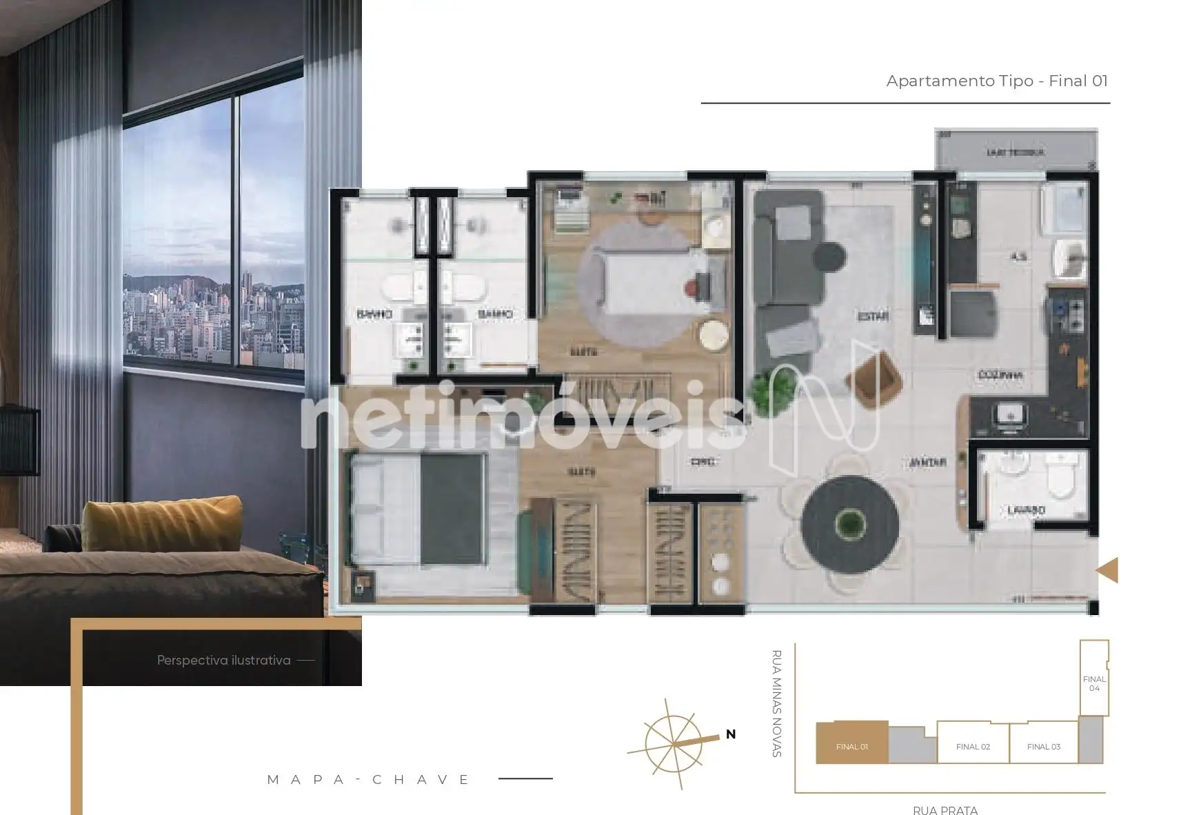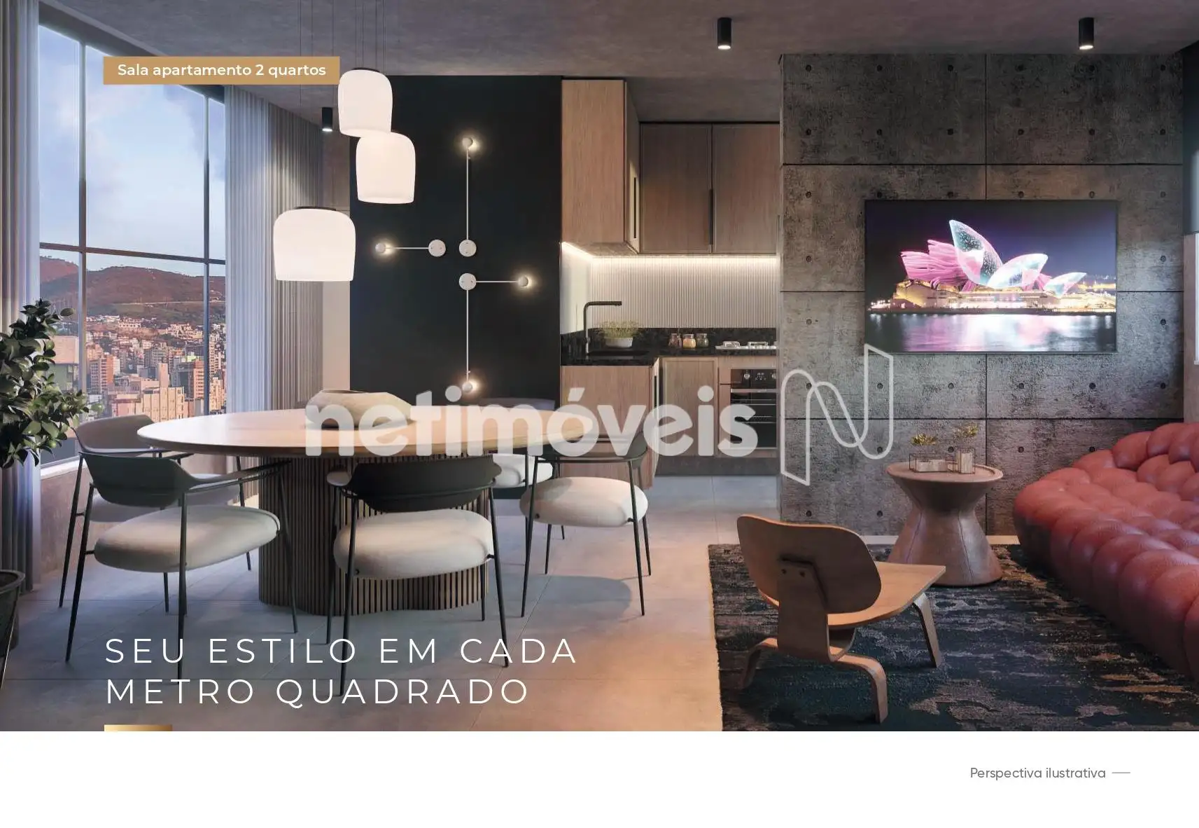 São 64m² com 2 suítes, lavabo e cozinha integrada. Esquadria com tratamento acústico, infraestrutura para instalação de ar condicionado nos quartos e salas.