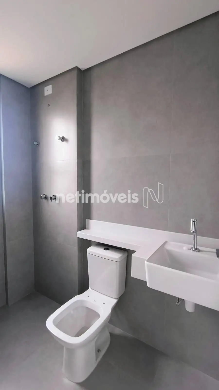 02 Banhos suítes, pisos porcelanatos, bancadas em mármore sintético (super prime).