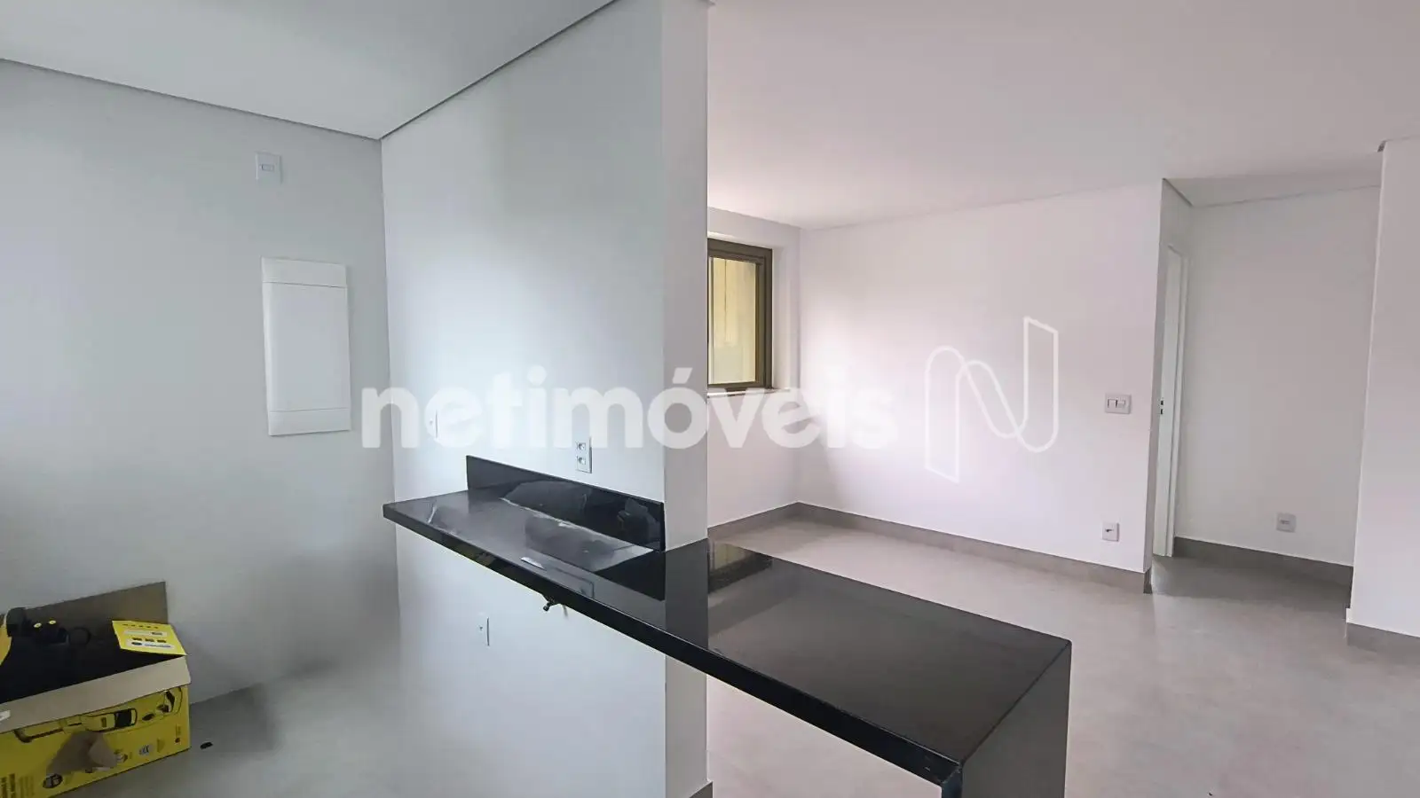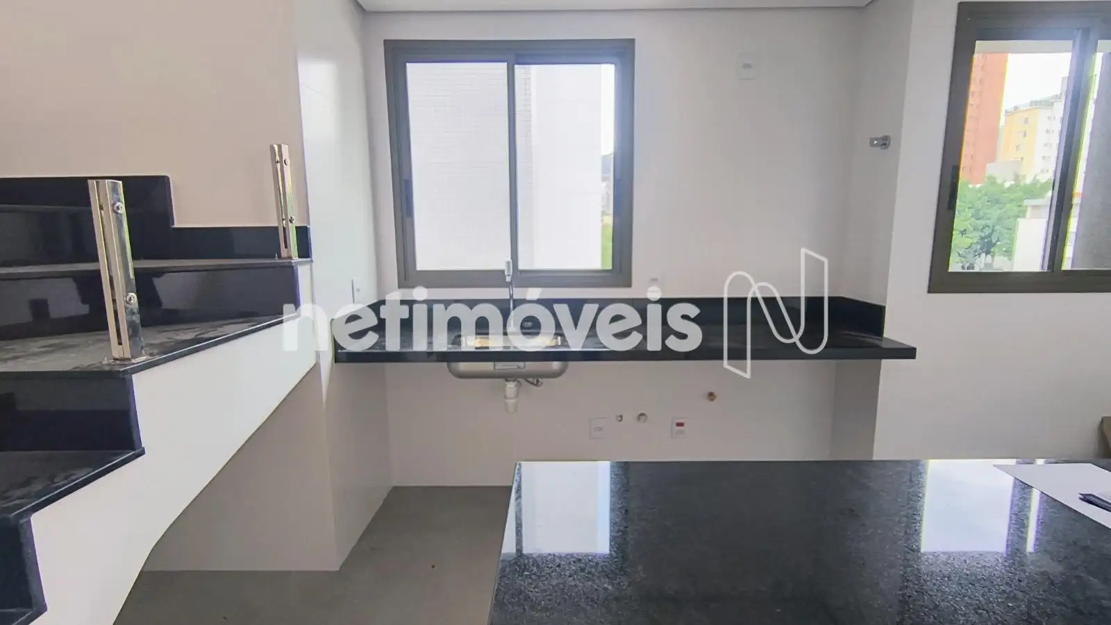 Cozinha com piso porcelanato, bancada em granito.