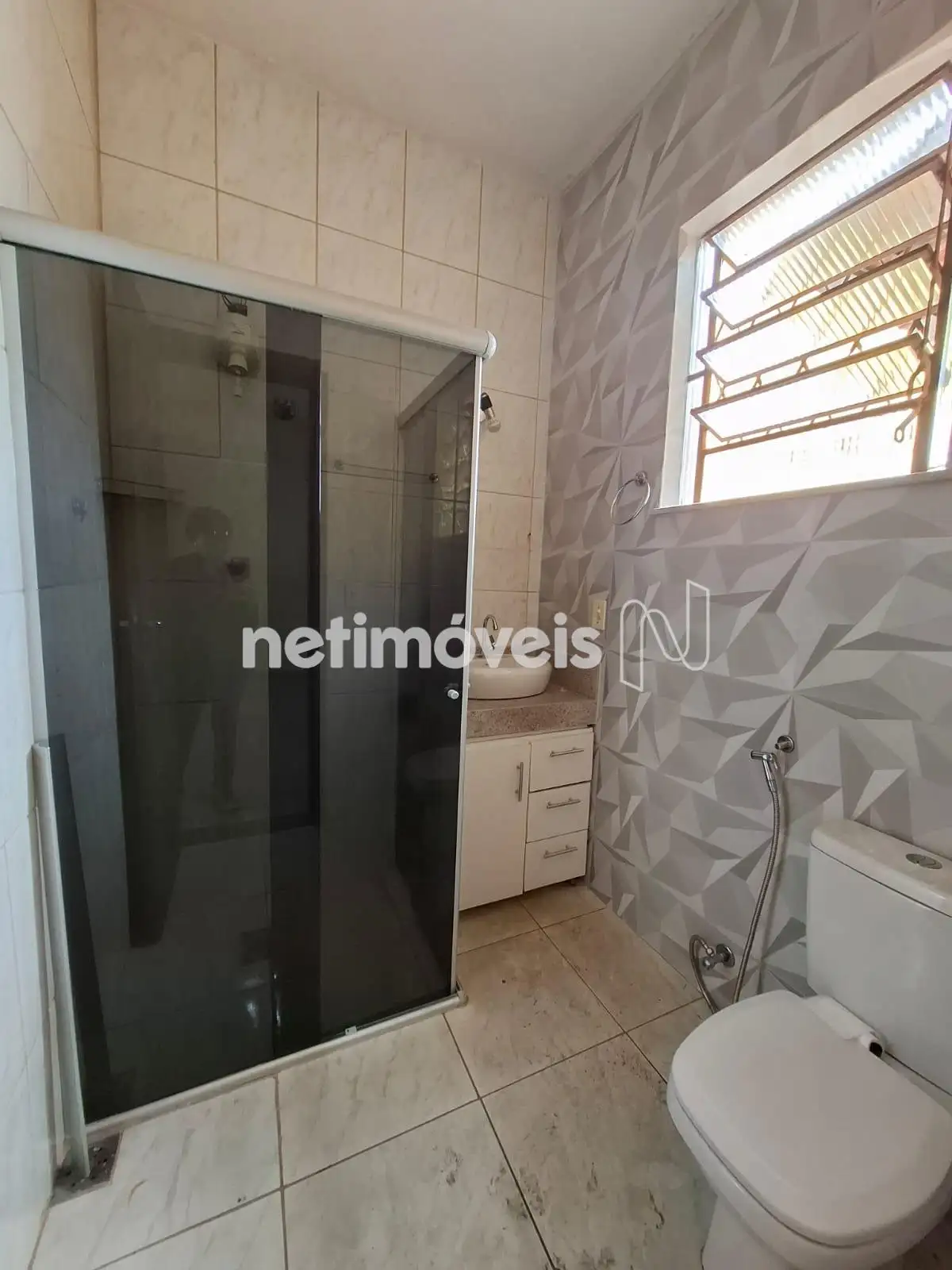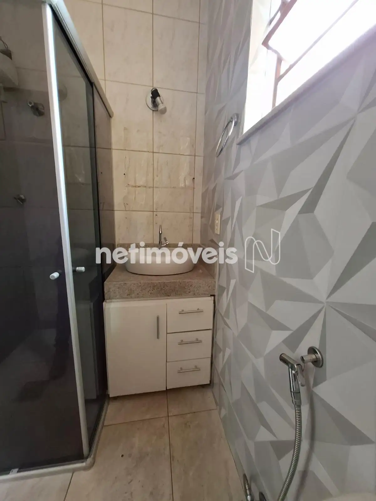 * Banho social: bancada com cuia, box blindex e armários