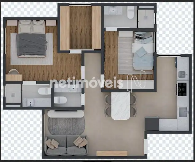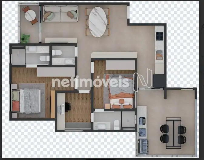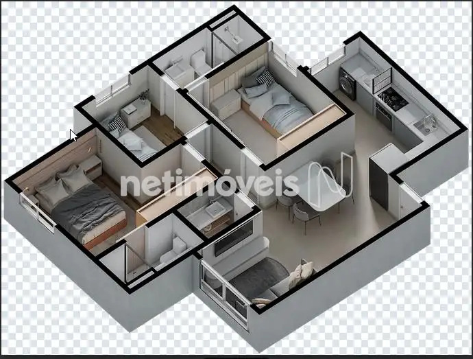 Salão, lavabo, 2 ou 3 quartos, 1 suíte e semi-suíte, cozinha, área de serviço