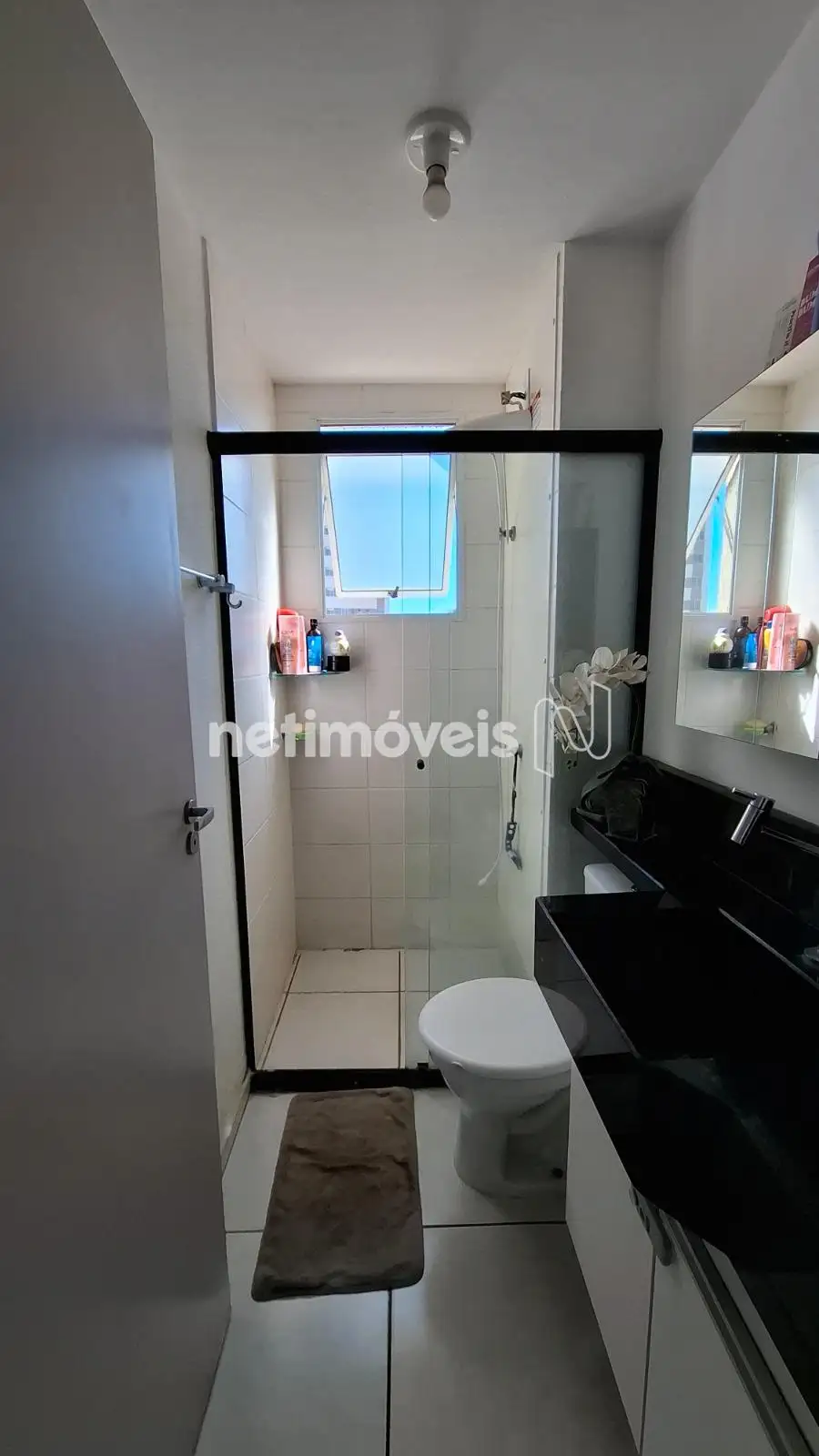 - Banheiro social completo, com espelho, armário planejado e box em vidro