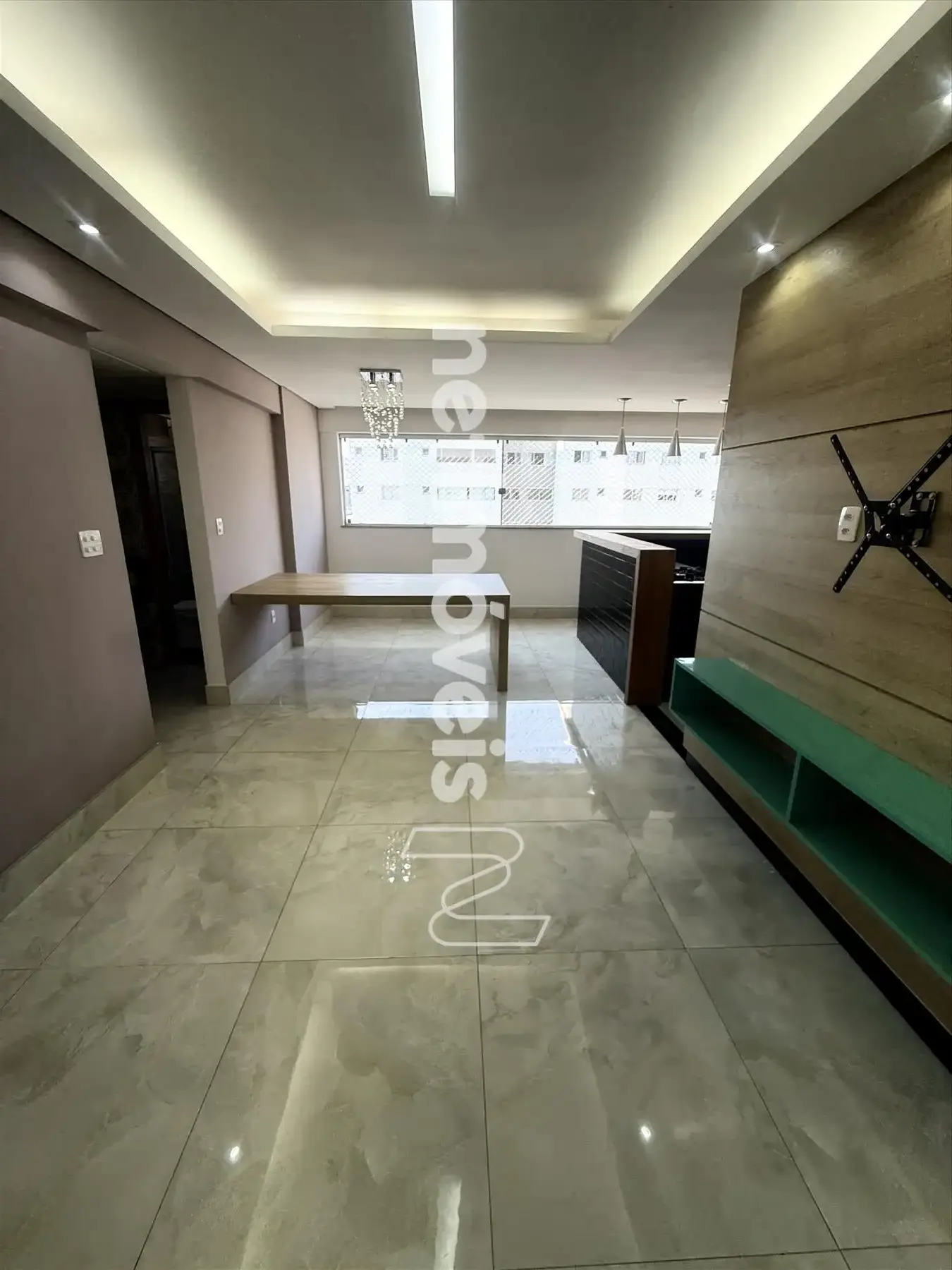 - Sala: Ampla e confortável, com espaço para dois ambientes, integrada à varanda e cozinha americana.