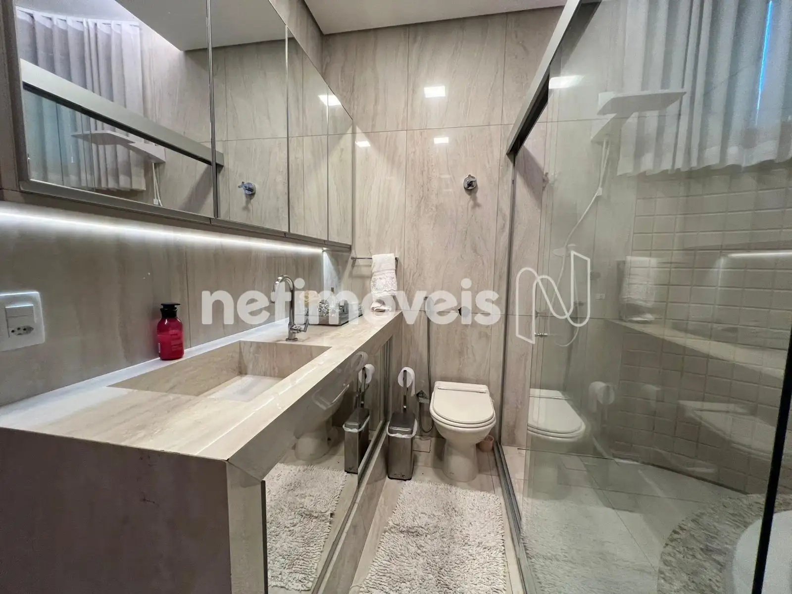 - Banheiro social com bancada em granito, box em vidro blindex e armário;