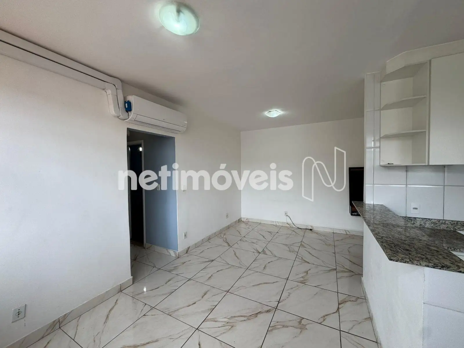 Sala grande para 2 ambientes com Ar condicionado, 2 quartos com armários, sendo 1 com ar condicionado,Banho social, espaçoso com box,Cozinha com bancada em granito, estilo americana, bem moderna com armários planejados. Area de serviço separada.