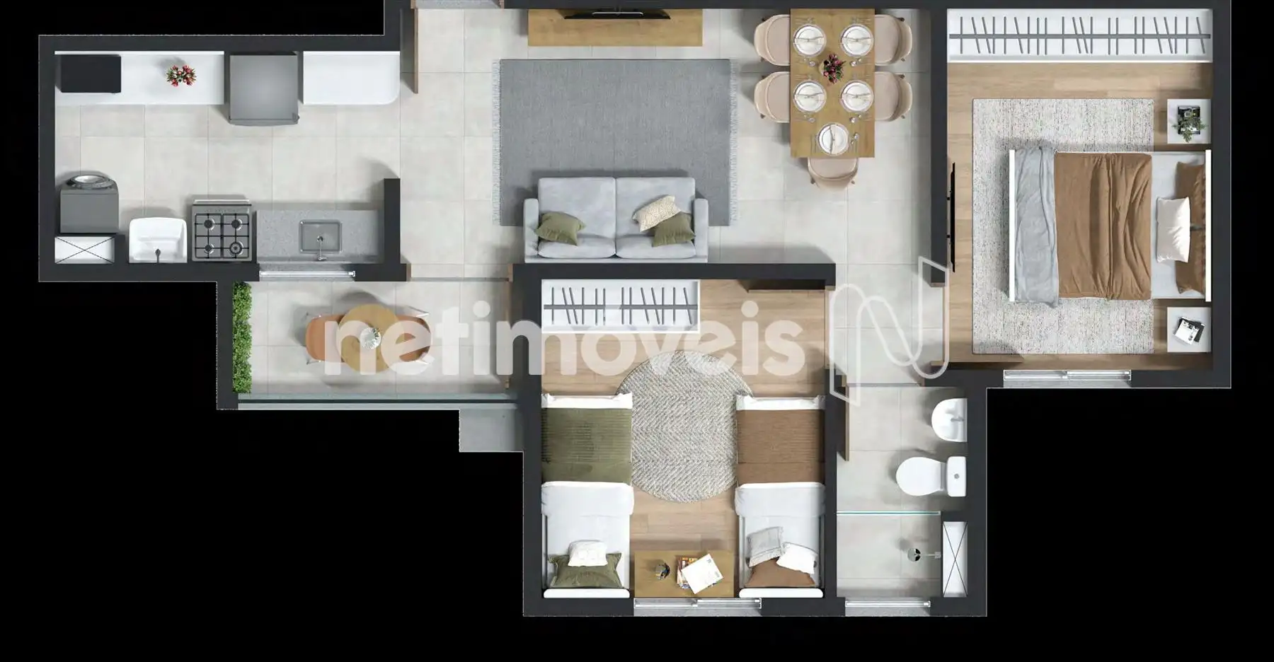 2 quartos com varanda