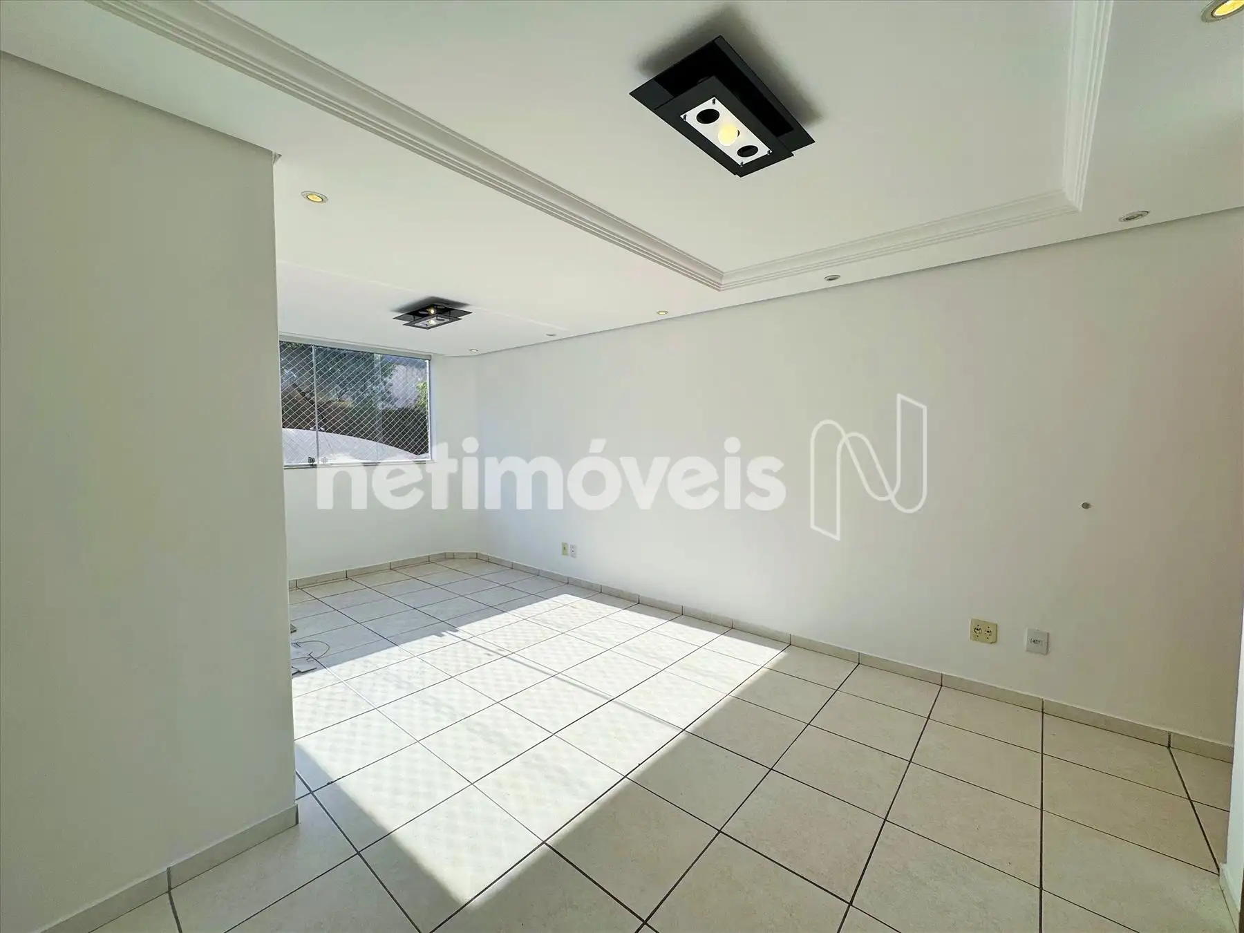 Sala em “L” ampla para 2 ambientes, com piso em cerâmica;