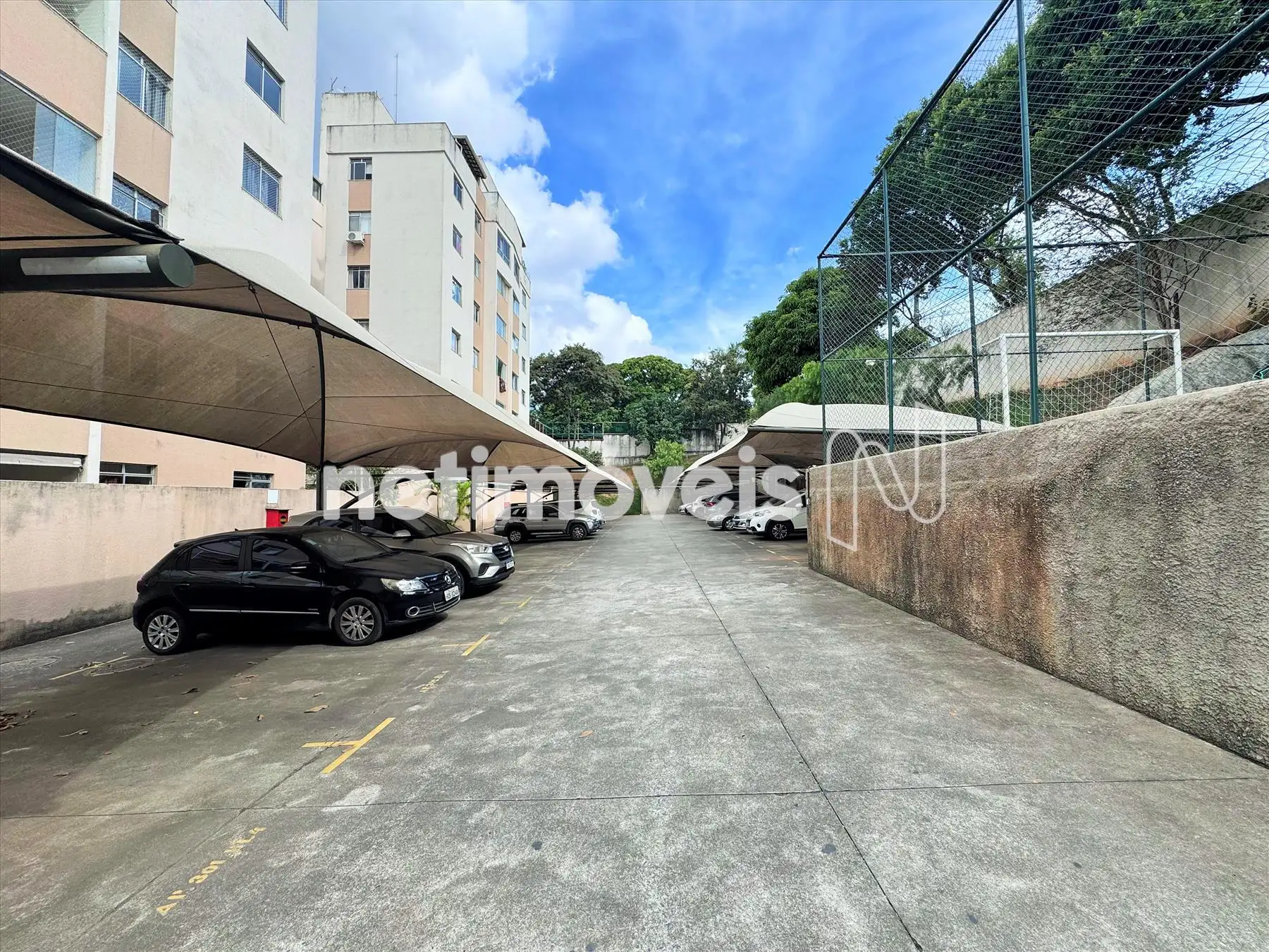 1 vaga de garagem grande, livre e coberta por toldo.