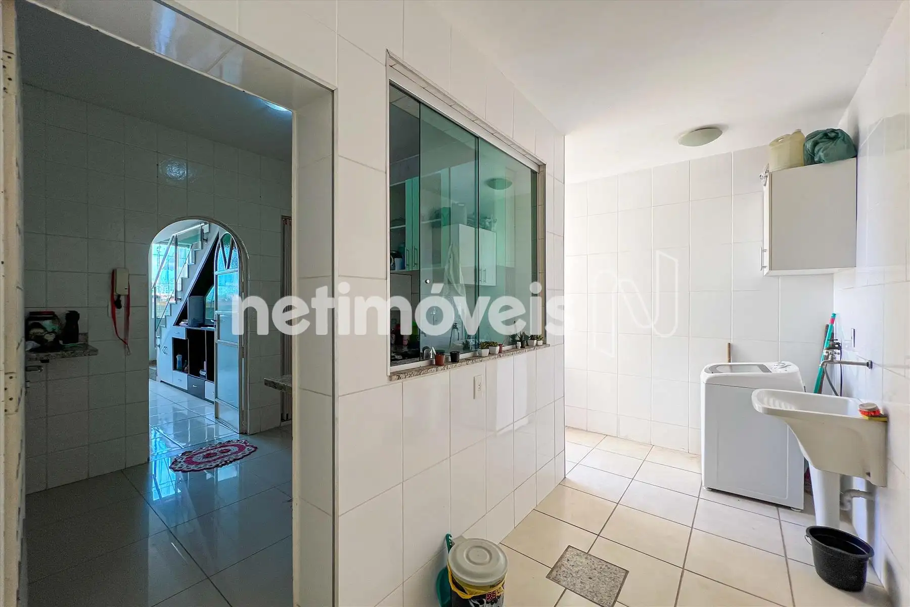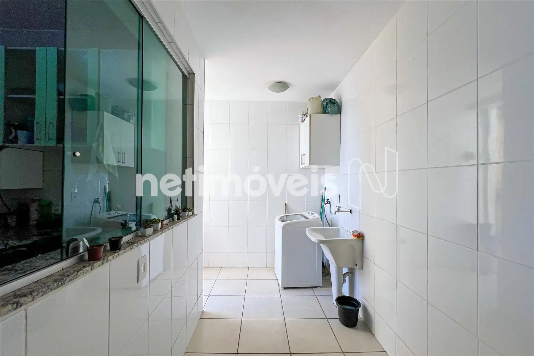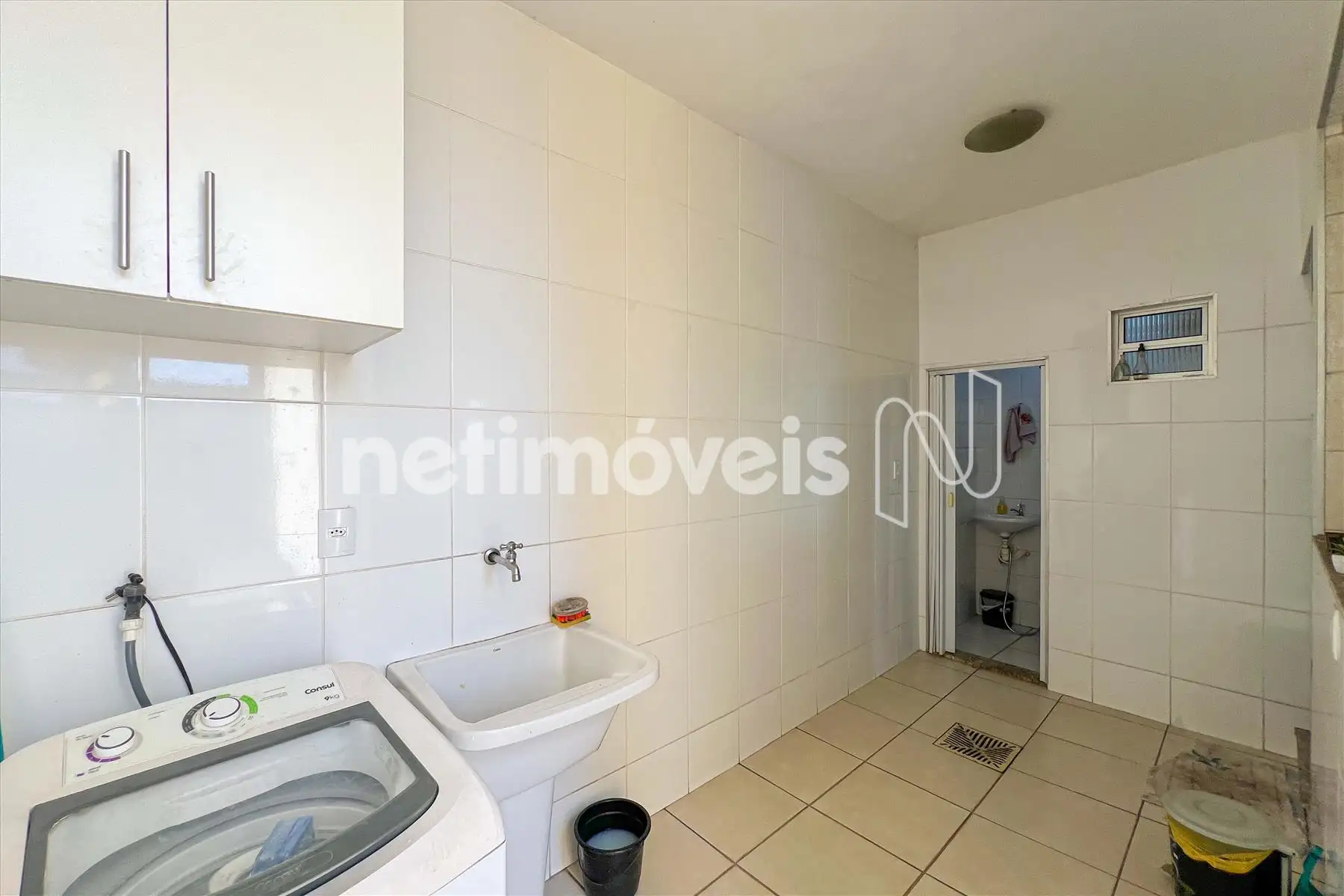 Área de serviço separada, com armário e acesso direto à cozinha.