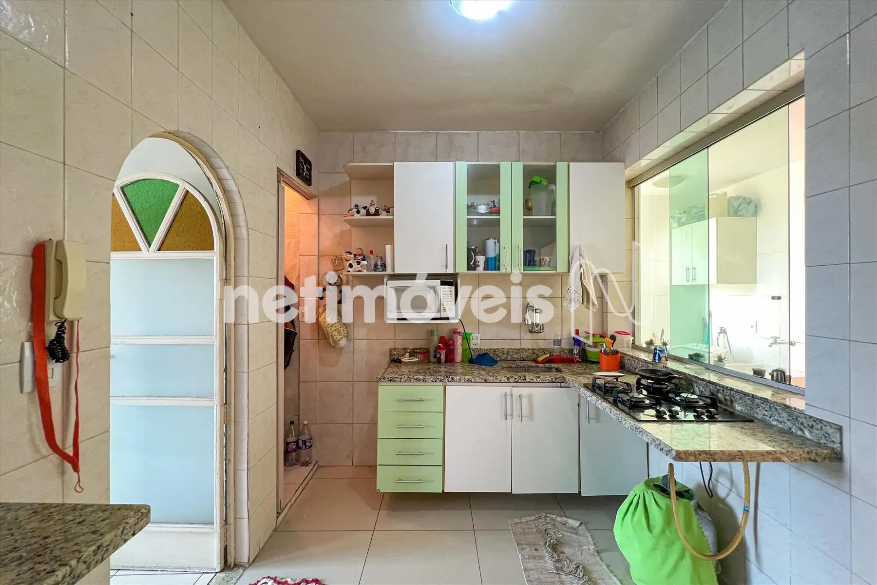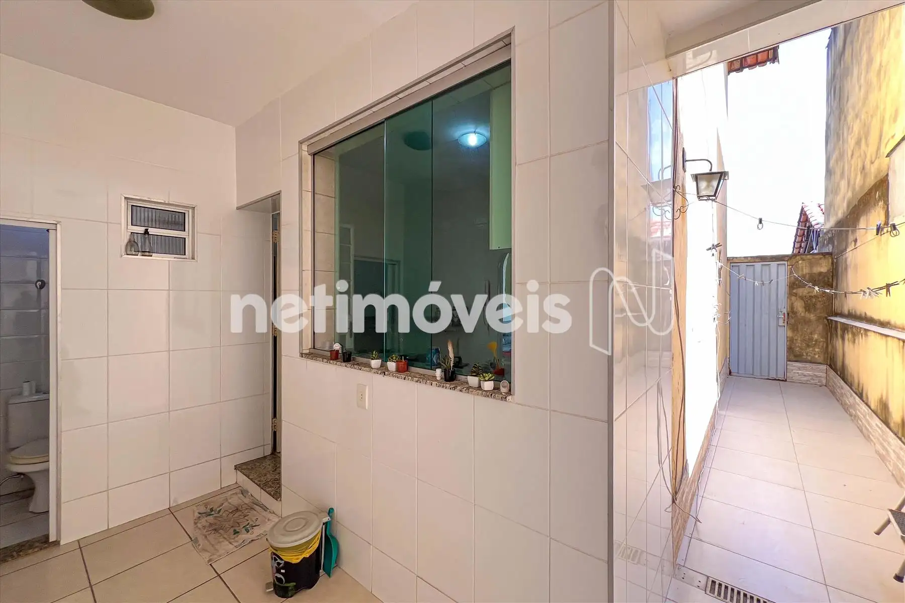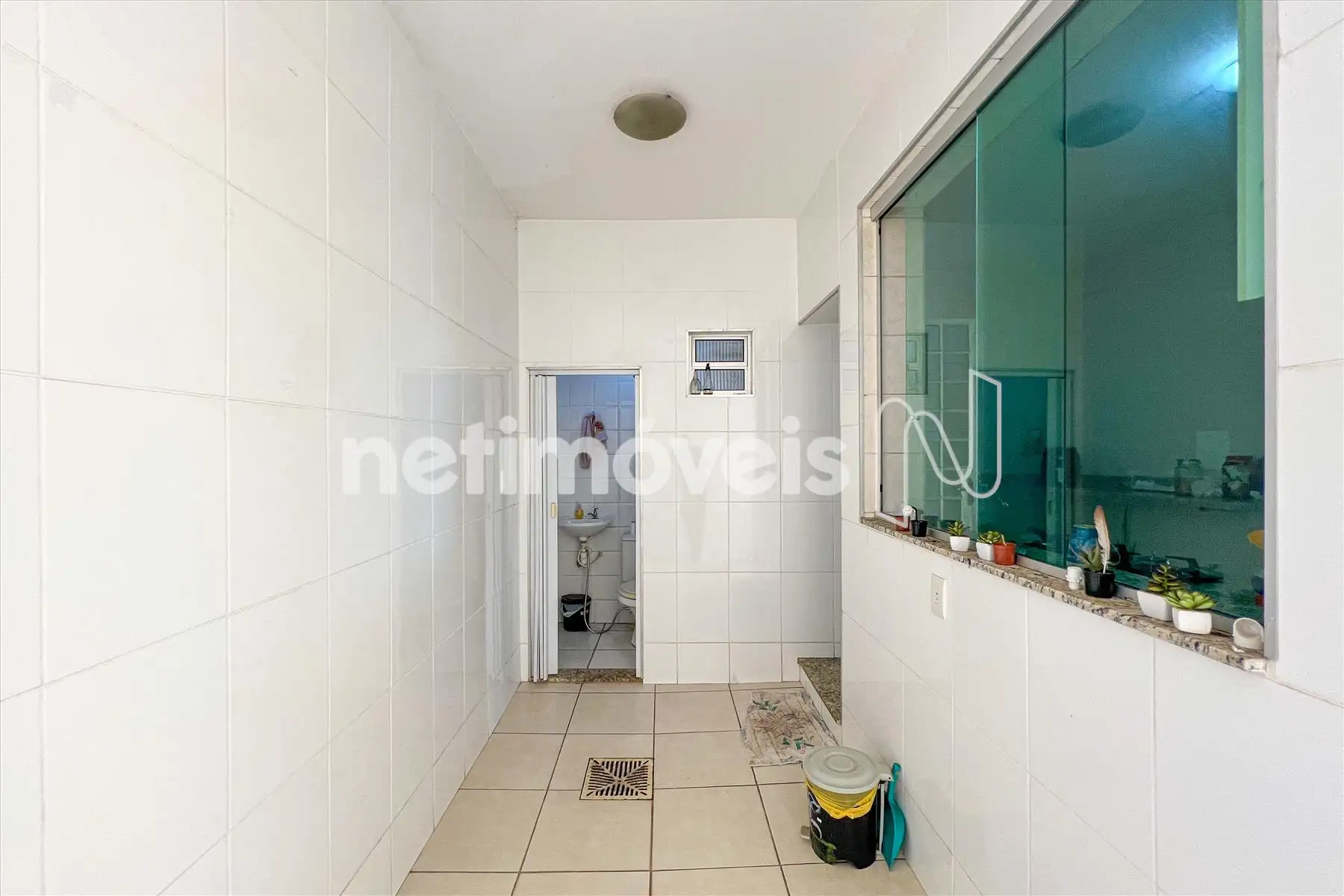 Área de serviço separada, com armário e acesso direto à cozinha.
