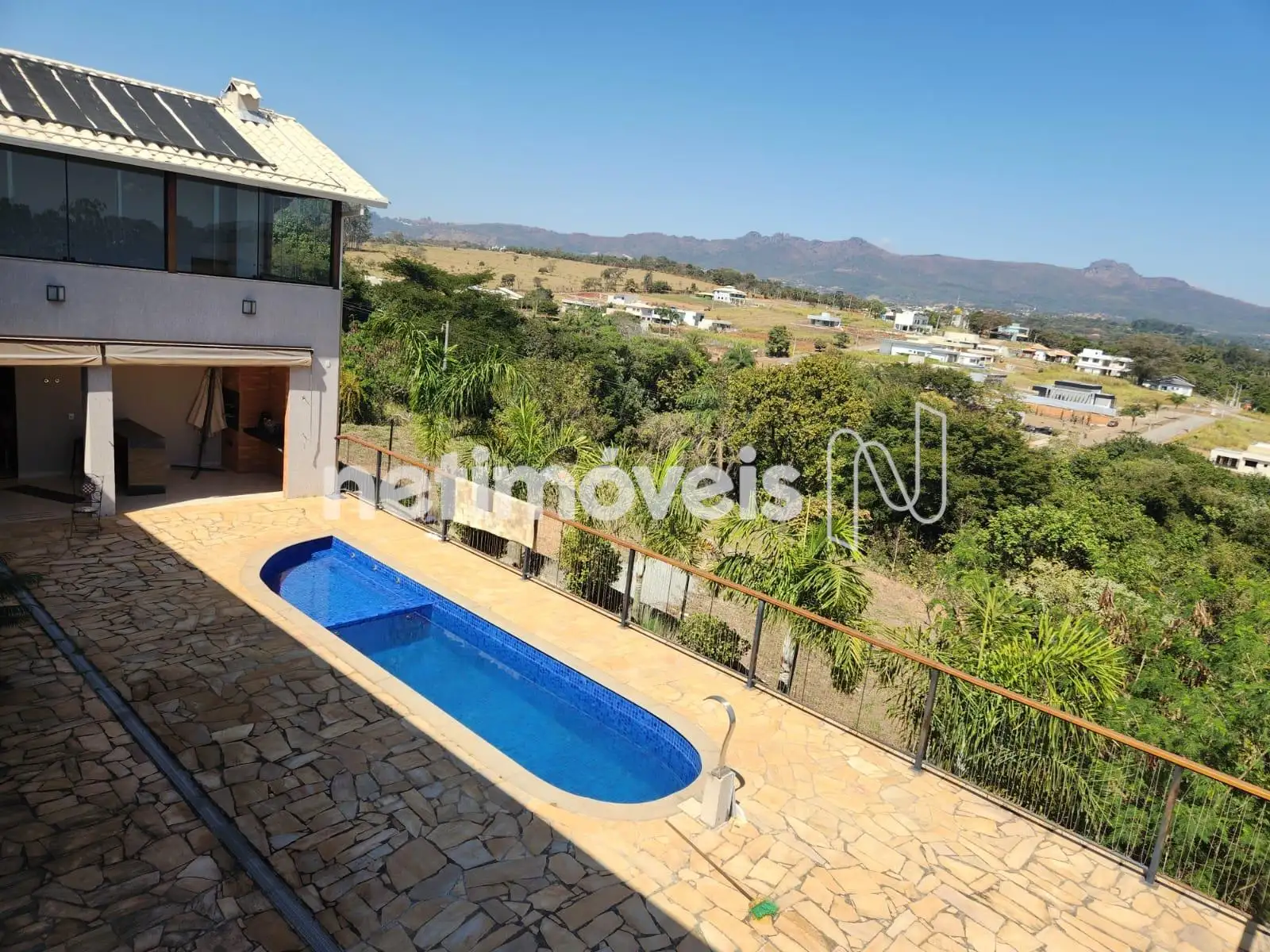 O imóvel possui 572m², num lote de 1800m². Sala ampla com piso laminado. Cozinha com excelentes armários, área gourmet com churrasqueira elétrica, piscina aquecida com linda vista, 6 quartos sendo 4 suítes e 2 semi-suítes, closet na suíte principal, 8 banheiros, despensa, 4 vagas cobertas e espaço para vários carros em pátio descoberto. Ao fundo pode-se avistar uma pequena cachoeira onde são realizadas caminhadas e aulas de algumas faculdades.