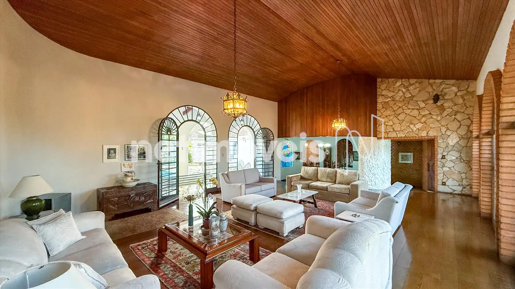 No 1º pavimento, há um salão amplo para três ambientes, sala de jantar, banheiro social, cozinha espaçosa com despensa, copa, lavabo, adega, escritório, lavanderia e uma dependência completa de empregada (DCE). O quintal é generoso, com piscina, ducha, sauna e banheiro.