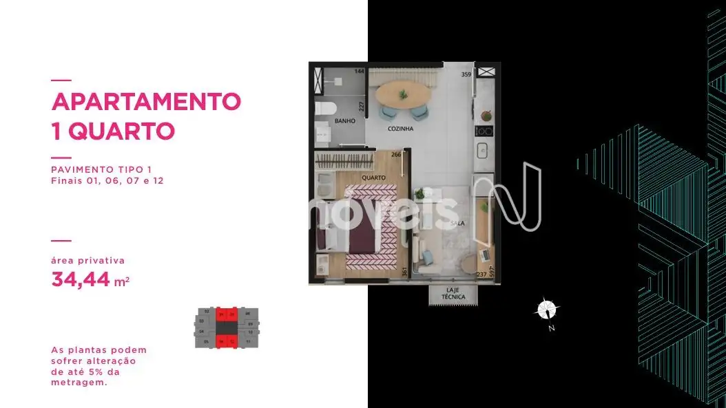 - Quartos e suítes piso laminado, exceto em unidades tipo Studio que o piso é porcelanato