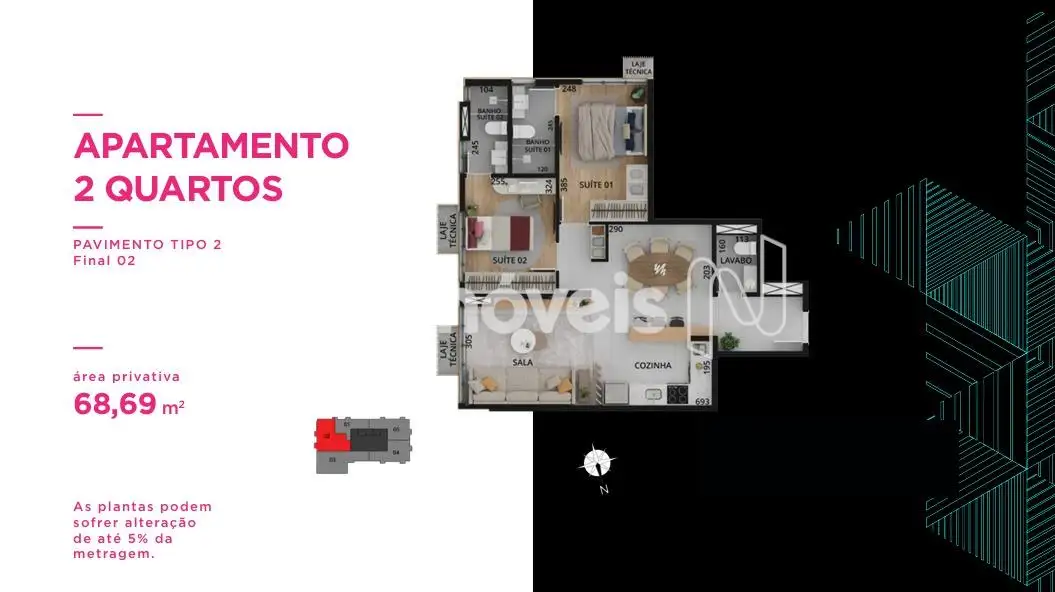 - 50 unidades de 2qts 57 a 78m² - 1 ou 2 vagas de garagem