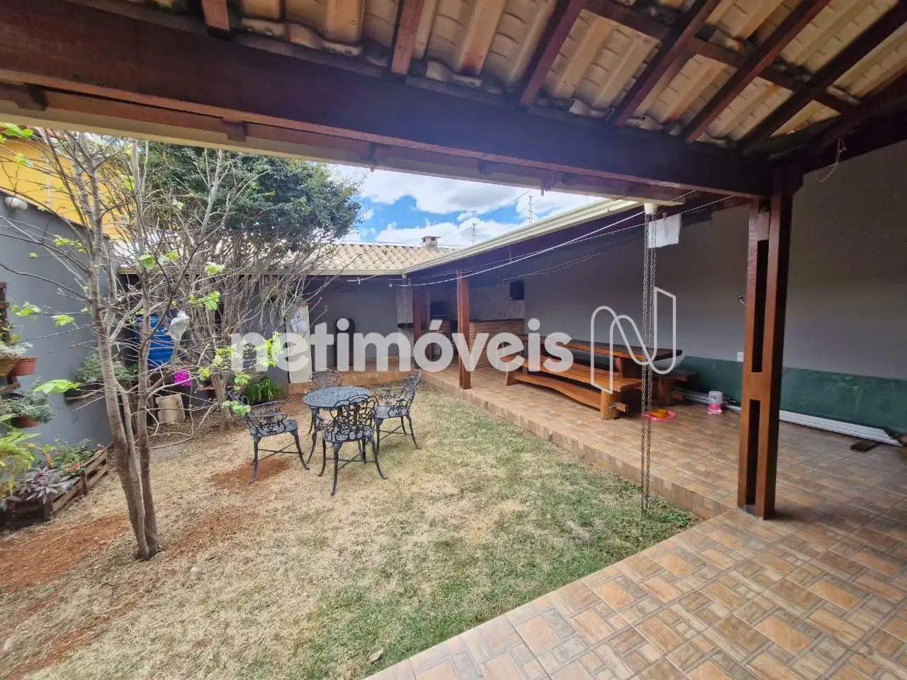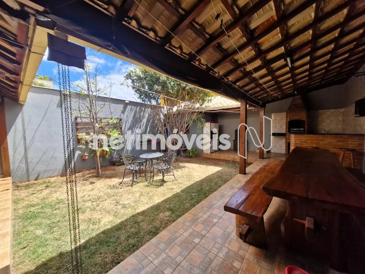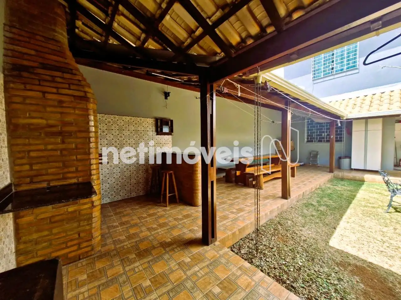 Quintal com gramado – espaço para as crianças brincarem ou para relaxar ao ar livre.