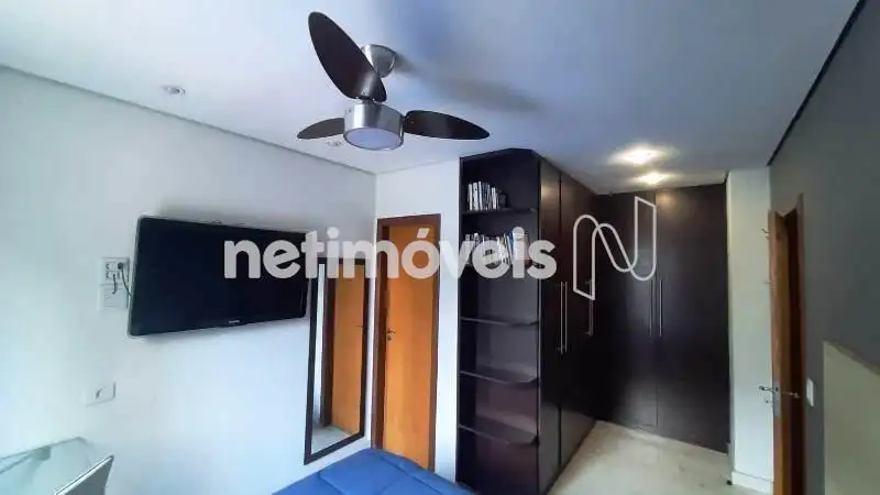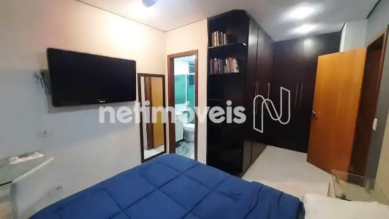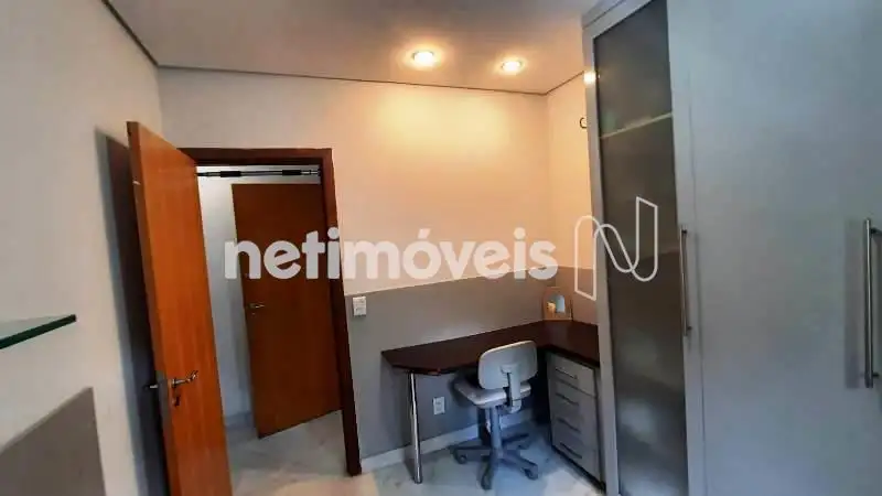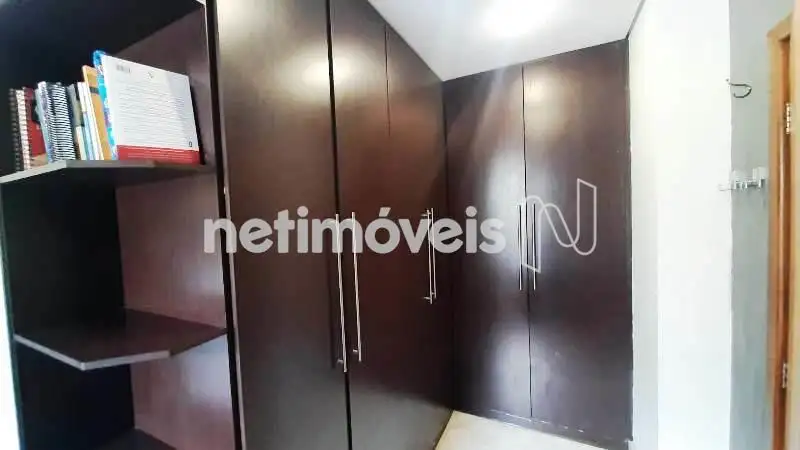 Três quartos sendo um suíte com área grande de armários e piso em mármore.