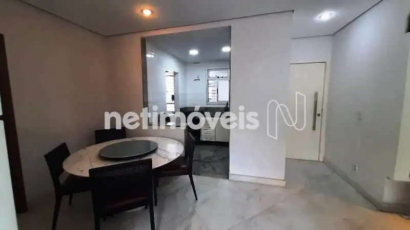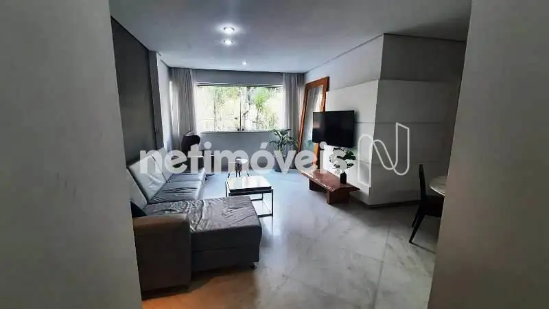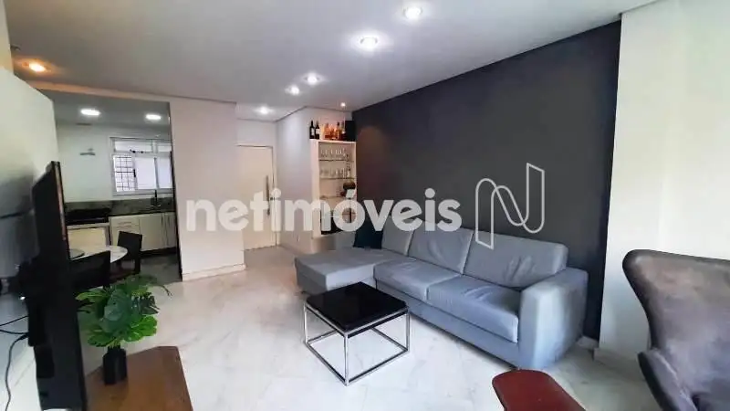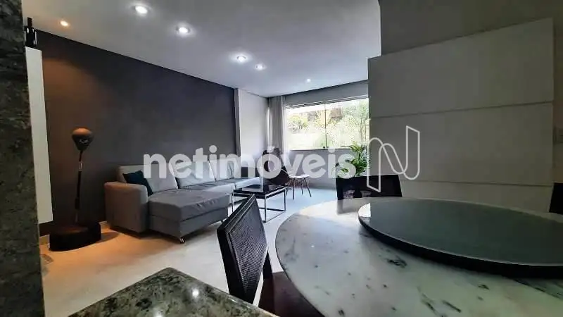 Ampla sala para 2 ambientes, com piso em mármore, iluminação planejada e varanda integrada.