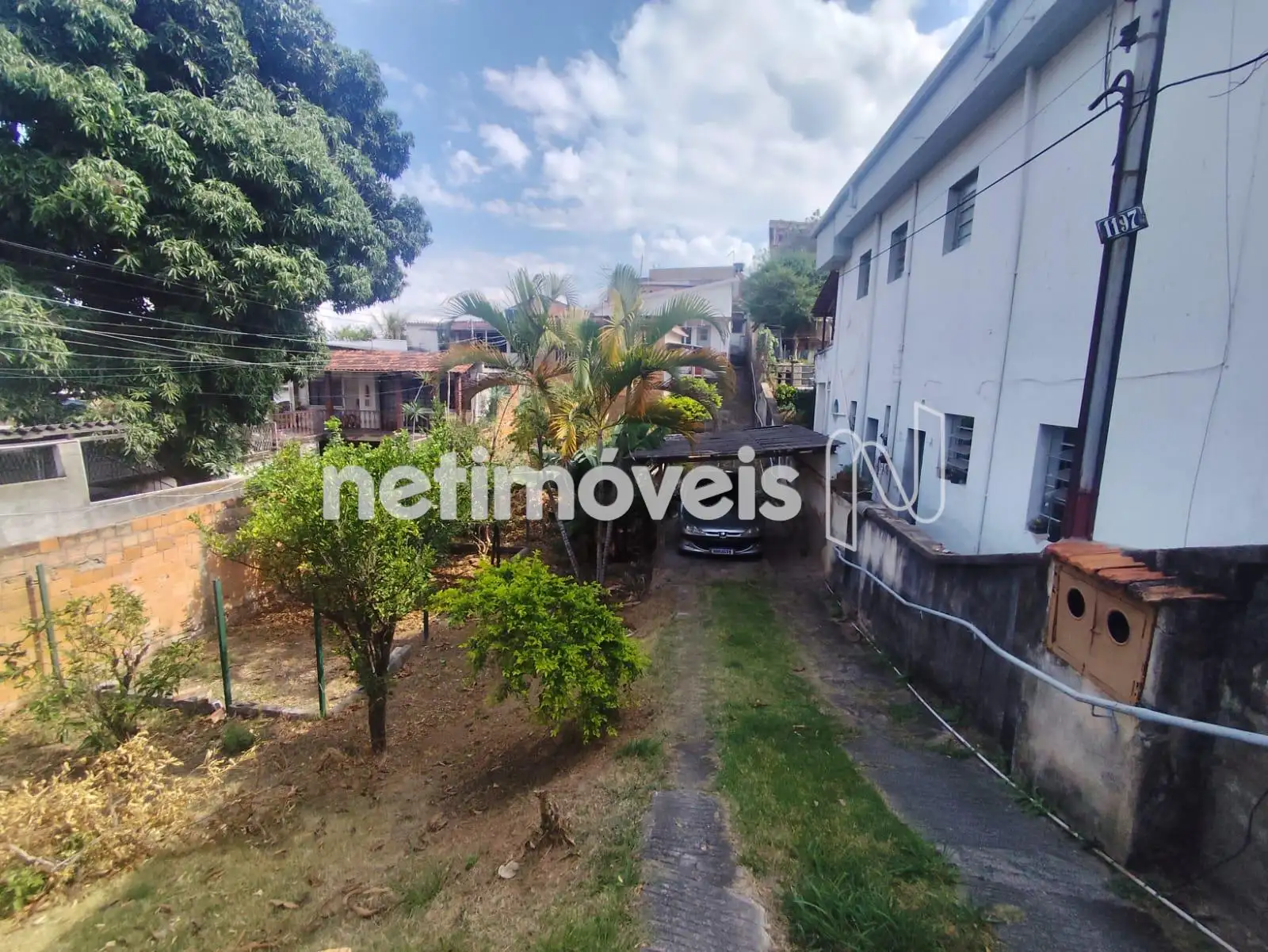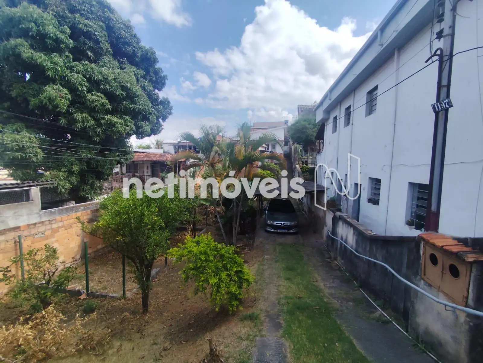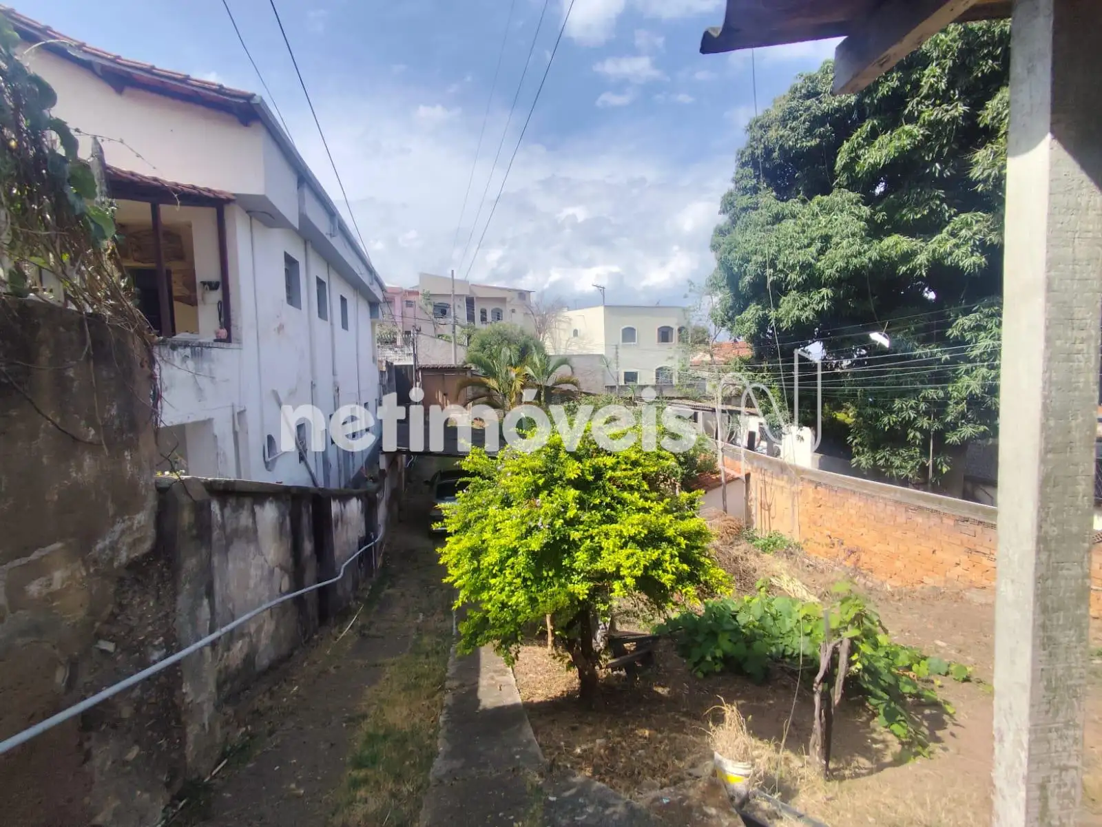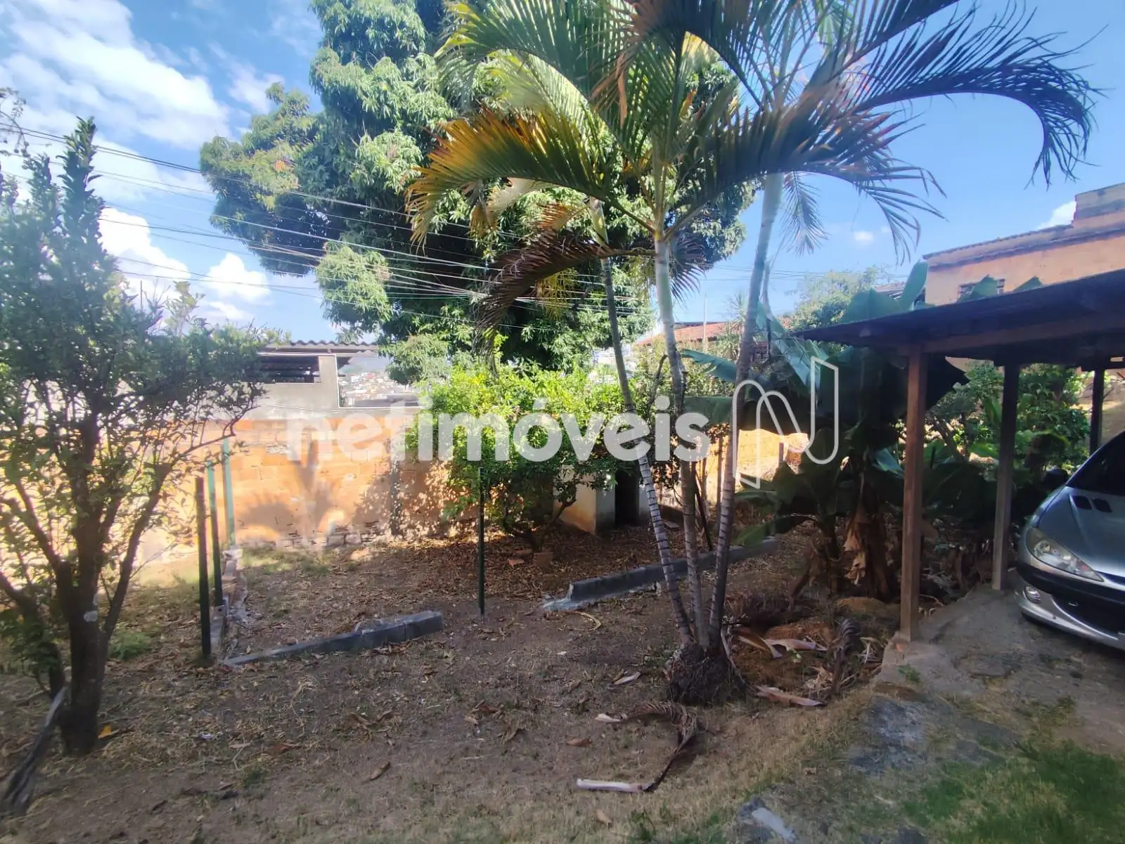 Possui benfeitorias consolidadas, com três construções ao fundo, além de área verde com árvores frutíferas na entrada.