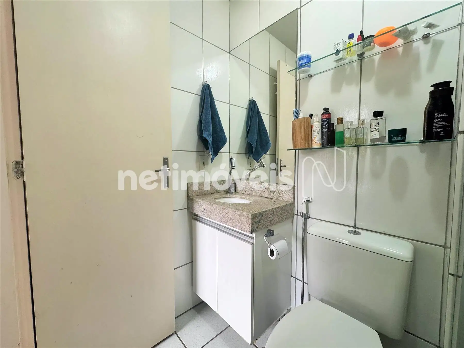 Banheiro social com acabamento moderno;