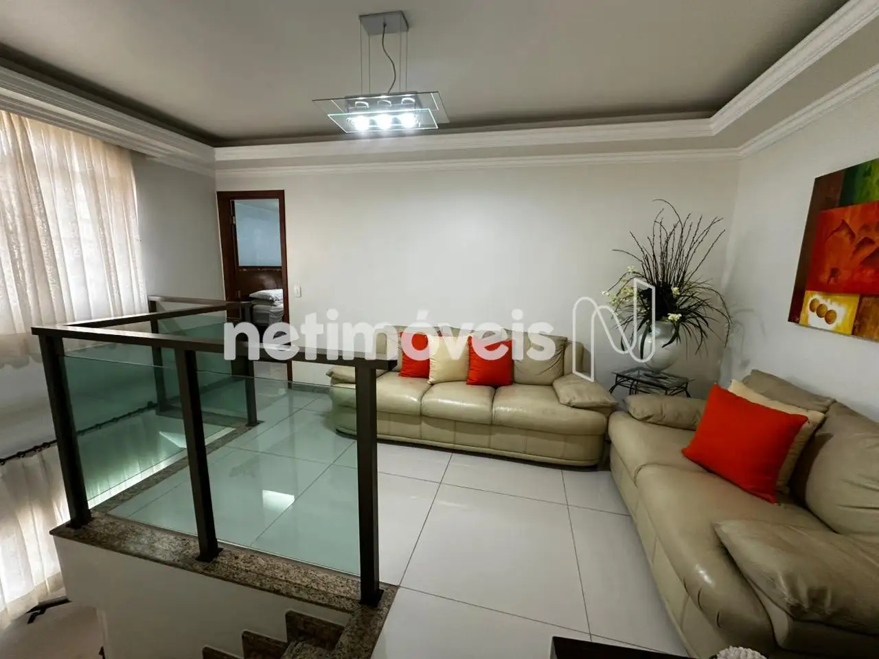 No segundo pavimento, há uma sala ampla para dois ambientes, perfeita para momentos de descanso e lazer em família. São três suítes espaçosas com armários planejados, sendo a suíte principal com closet.