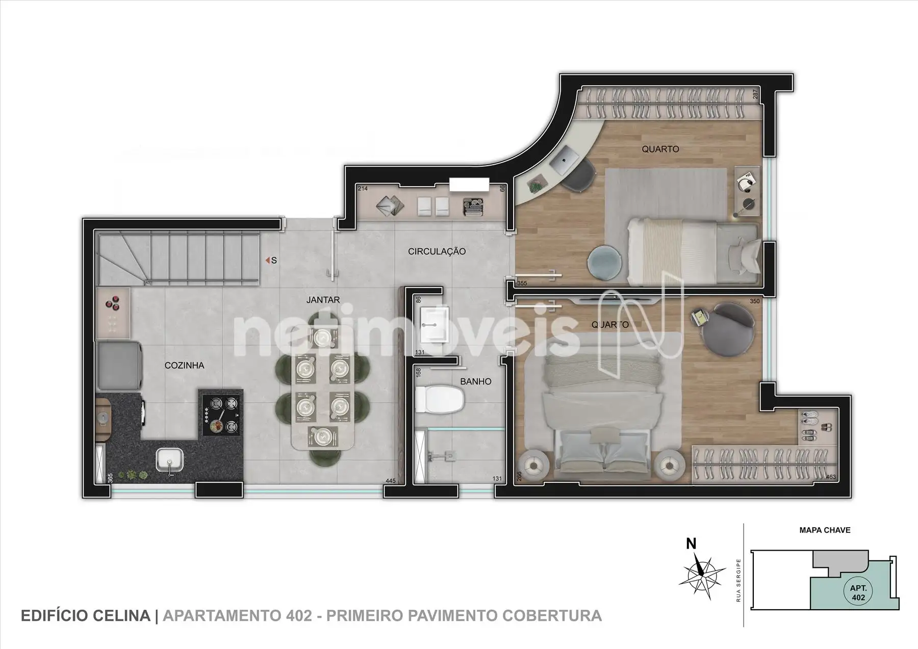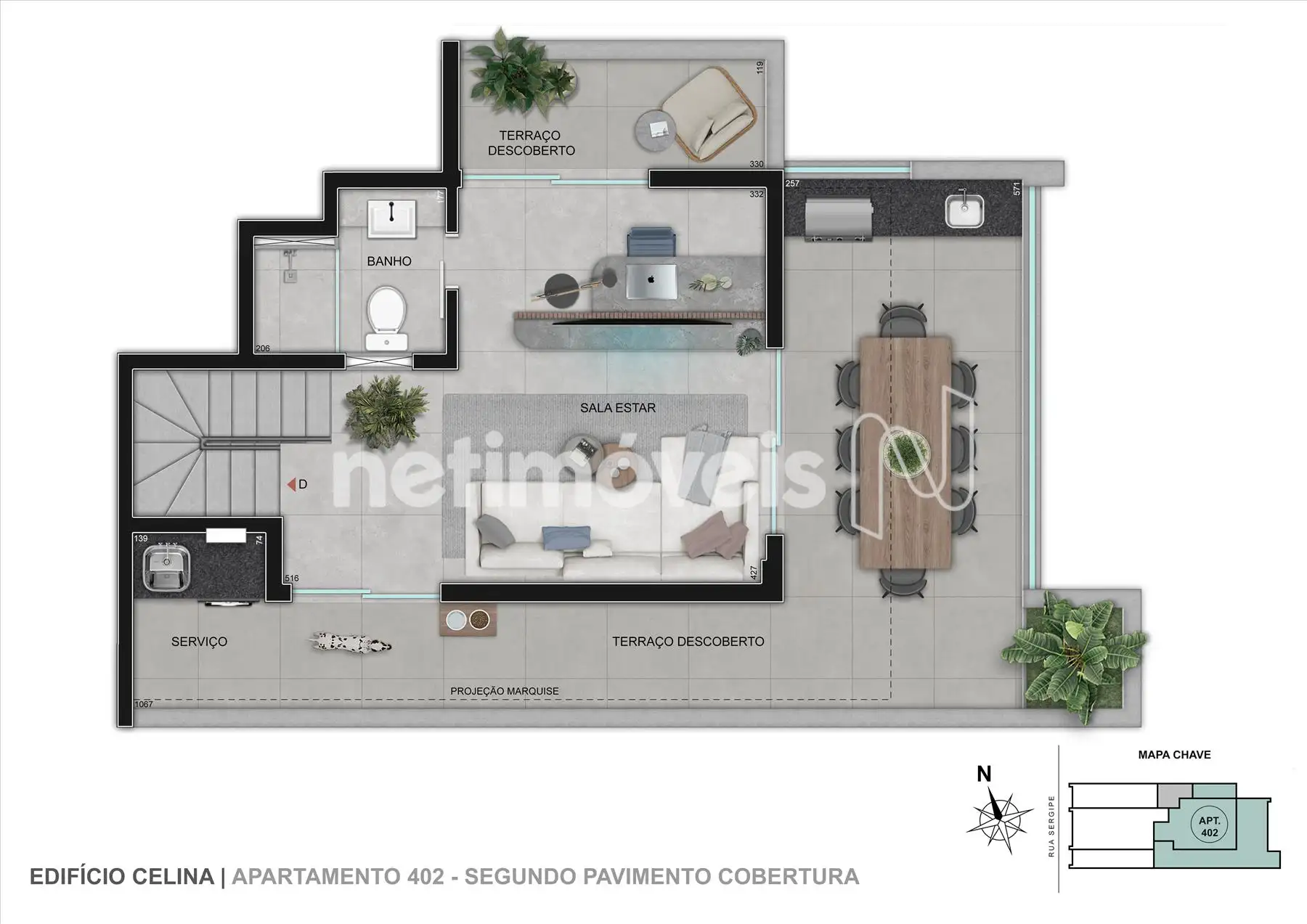 - Duplex 402: 107,67 m², 2 quartos com suíte + terraço (vide código 1140848)