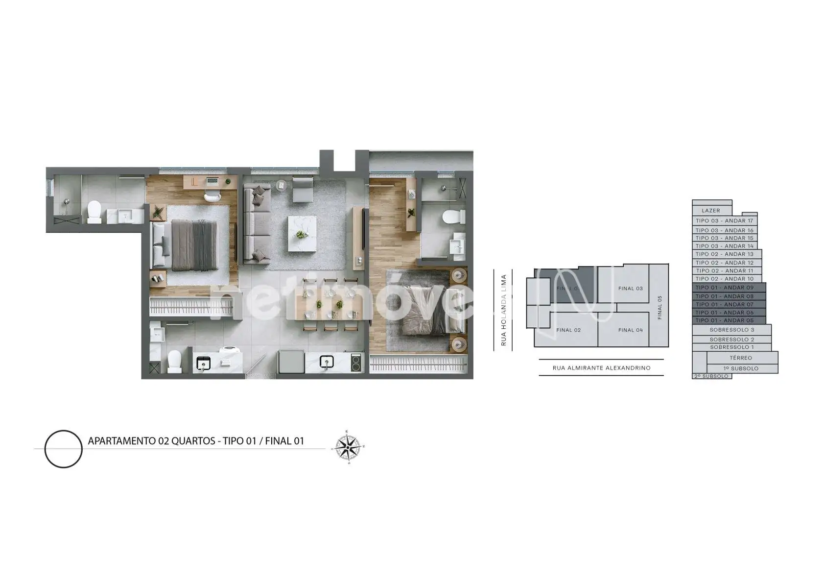 Encante-se com este lindo apartamento de 2 quartos, ambos com suítes espaçosas, que oferecem o máximo de conforto e privacidade para você e sua família.