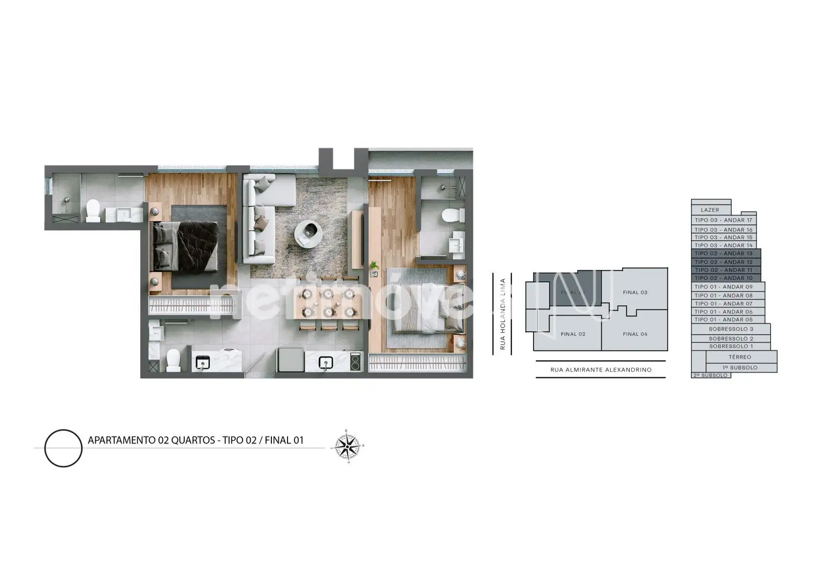 Encante-se com este lindo apartamento de 2 quartos, ambos com suítes espaçosas, que oferecem o máximo de conforto e privacidade para você e sua família.