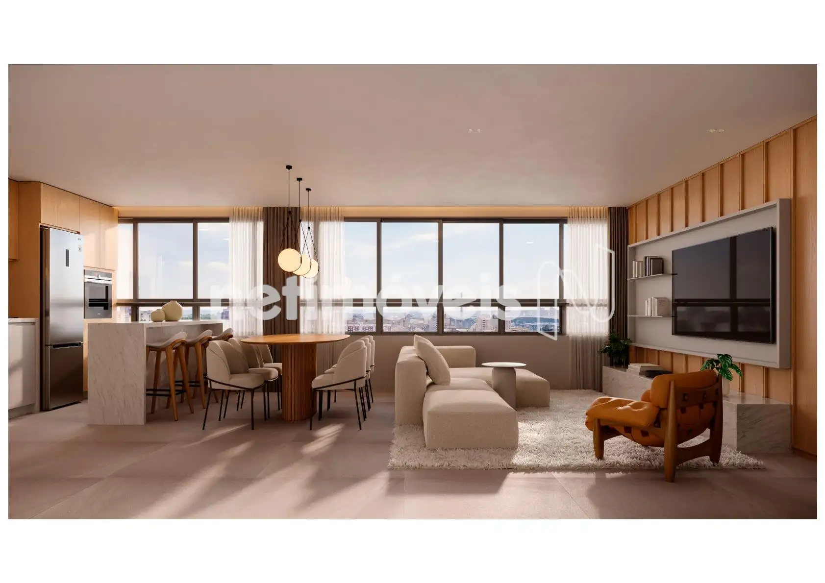 O imóvel conta com uma cozinha americana moderna, integrada à sala de estar e jantar, perfeita para quem busca um ambiente prático, elegante e acolhedor. Além disso, dispõe de um lavabo que traz ainda mais comodidade no dia a dia.