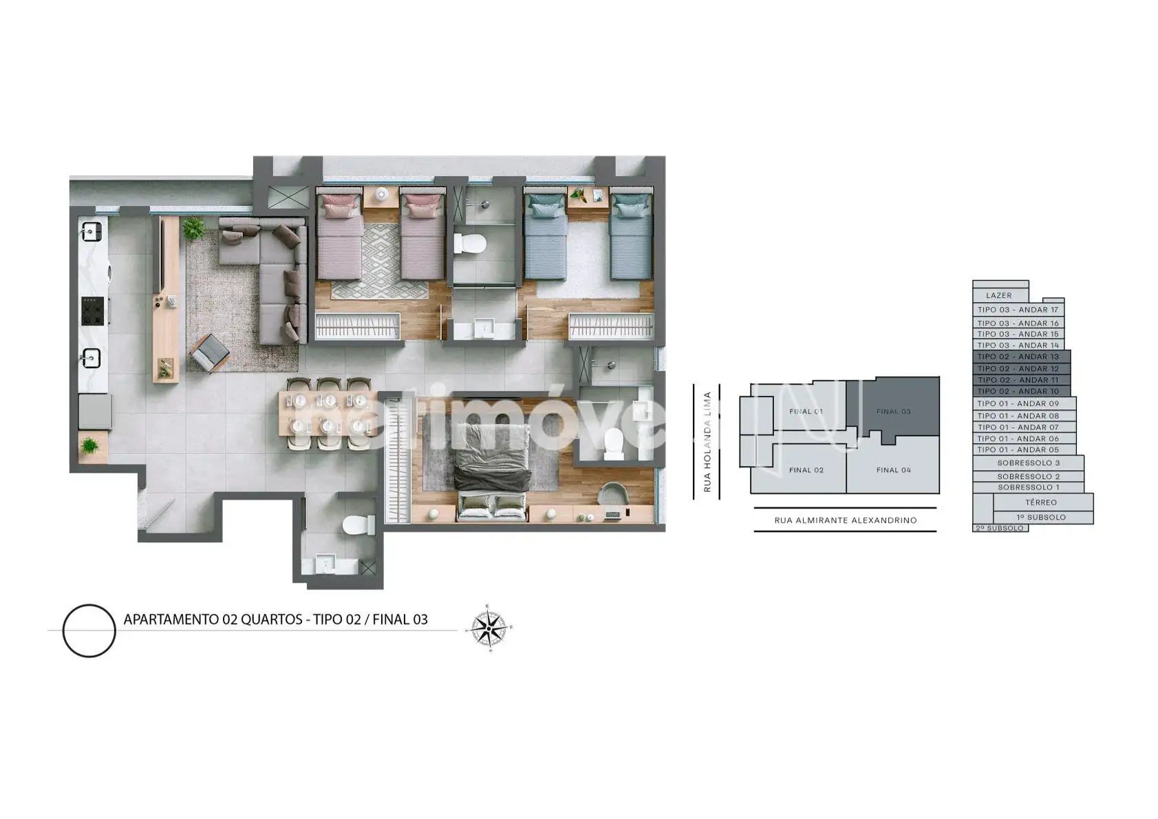 Encante-se com este lindo apartamento de 2 quartos, ambos com suítes espaçosas, que oferecem o máximo de conforto e privacidade para você e sua família.