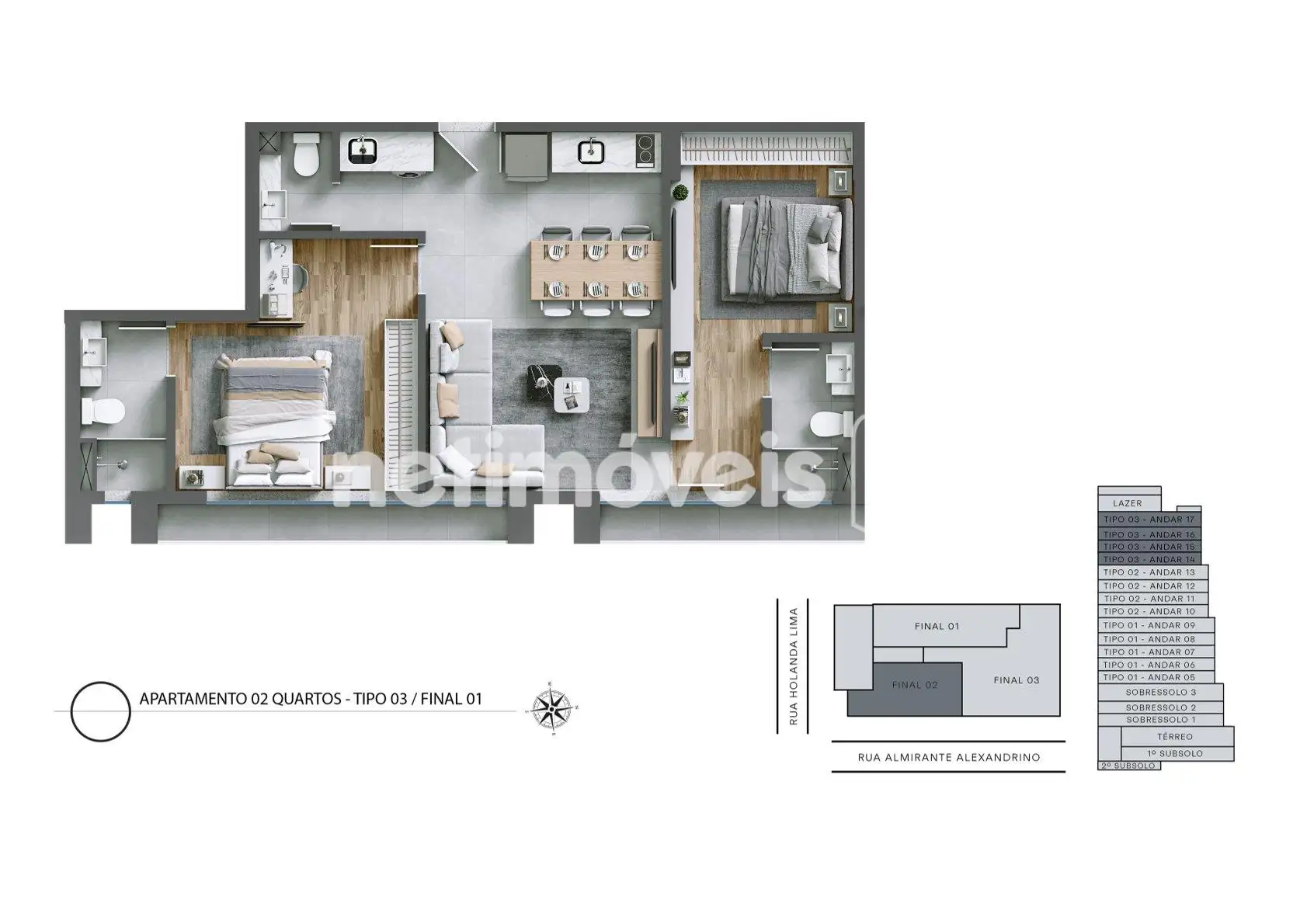 Encante-se com este lindo apartamento de 2 quartos, ambos com suítes espaçosas, que oferecem o máximo de conforto e privacidade para você e sua família.