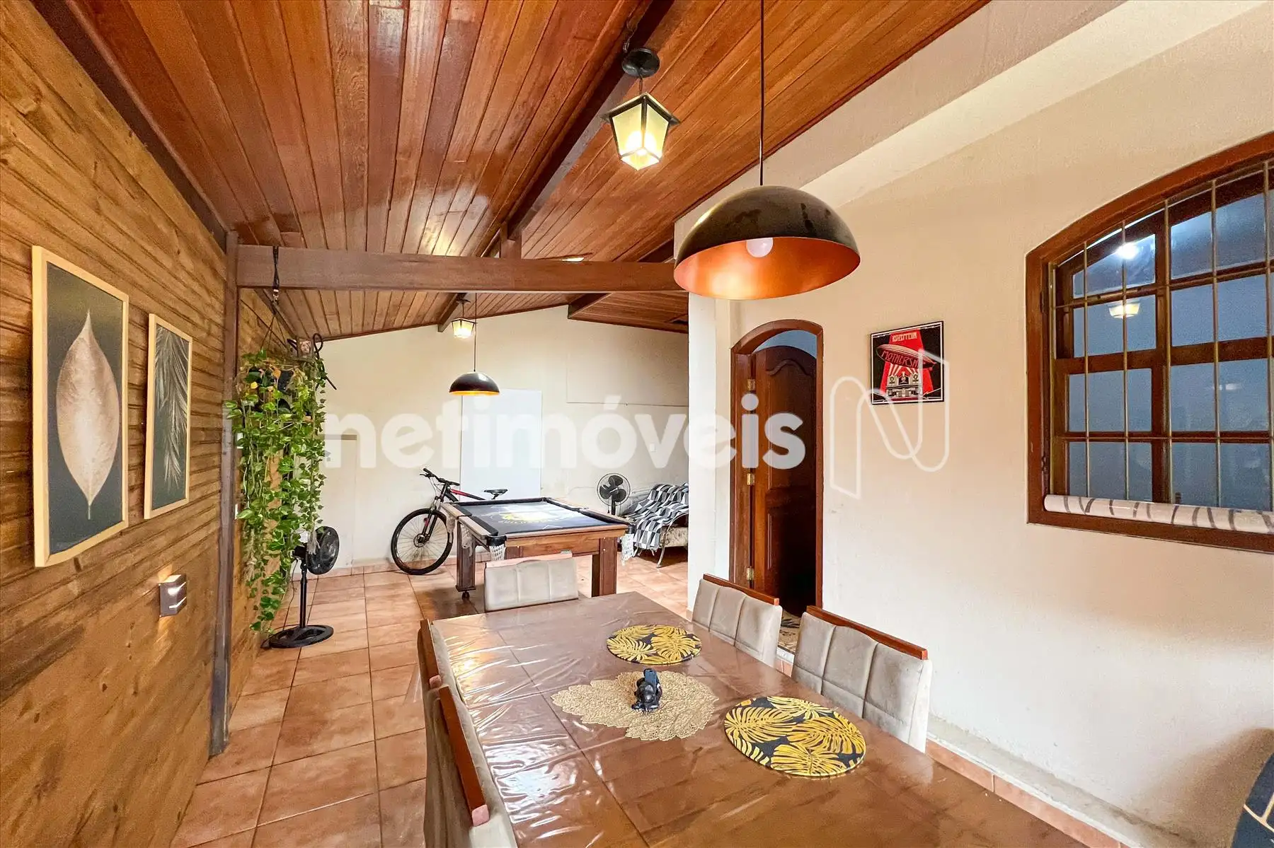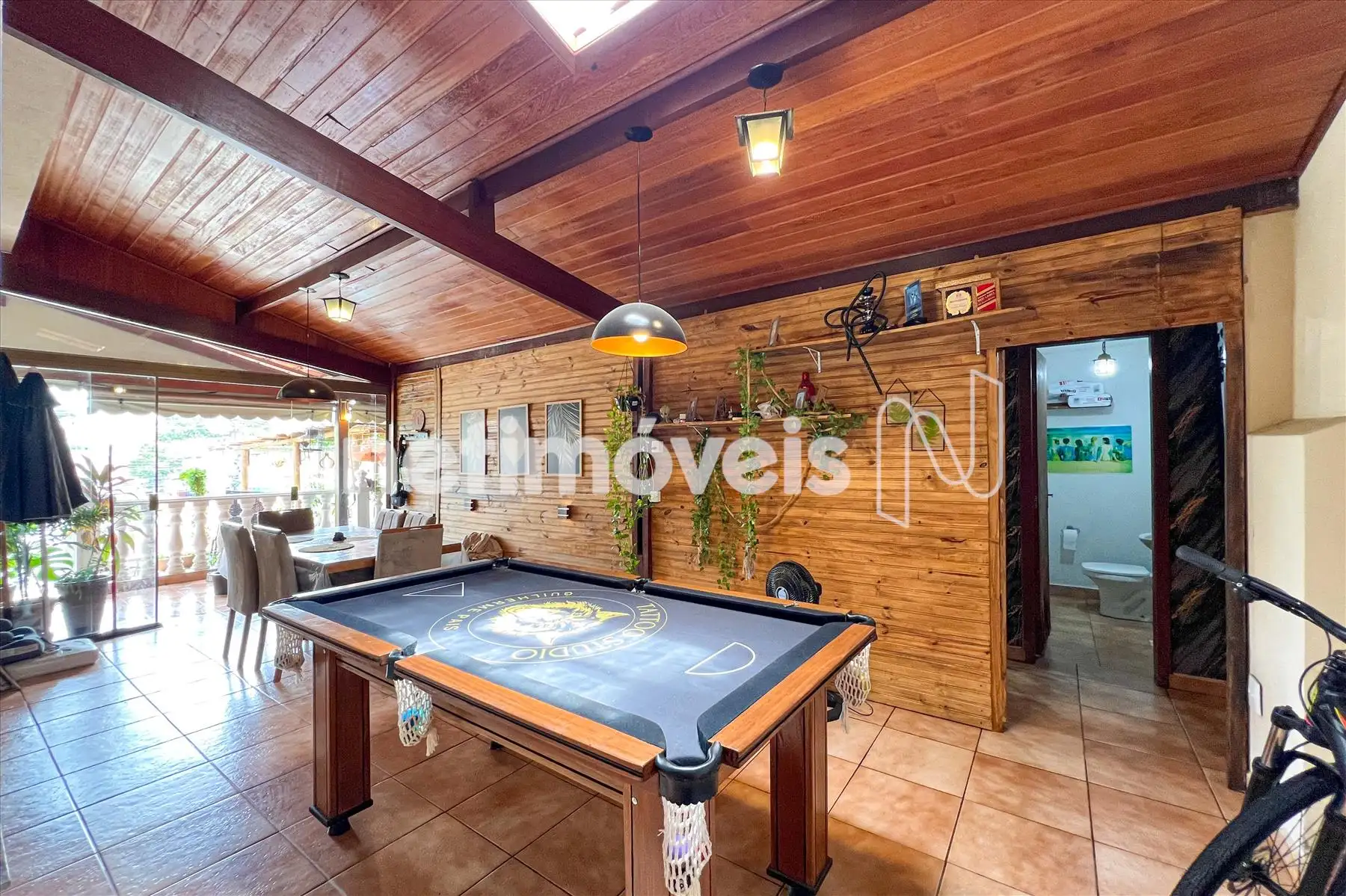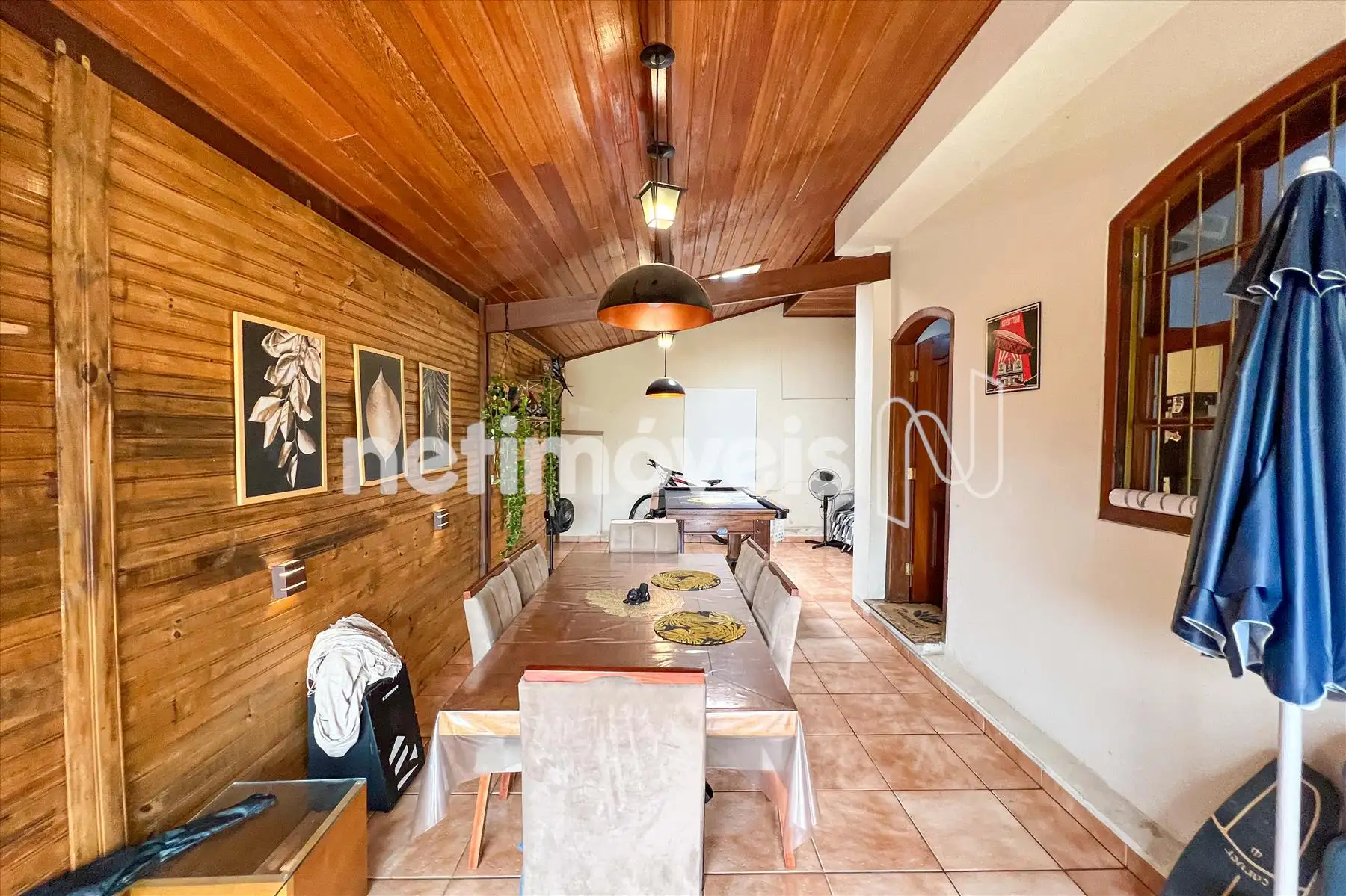 Salas amplas e aconchegantes, incluindo sala de jantar com cristaleira iluminada e sala para até quatro ambientes, em estilo rústico, com forro e parede em madeira, portas de correr em blindex e acesso à varanda coberta com toldo retrátil.