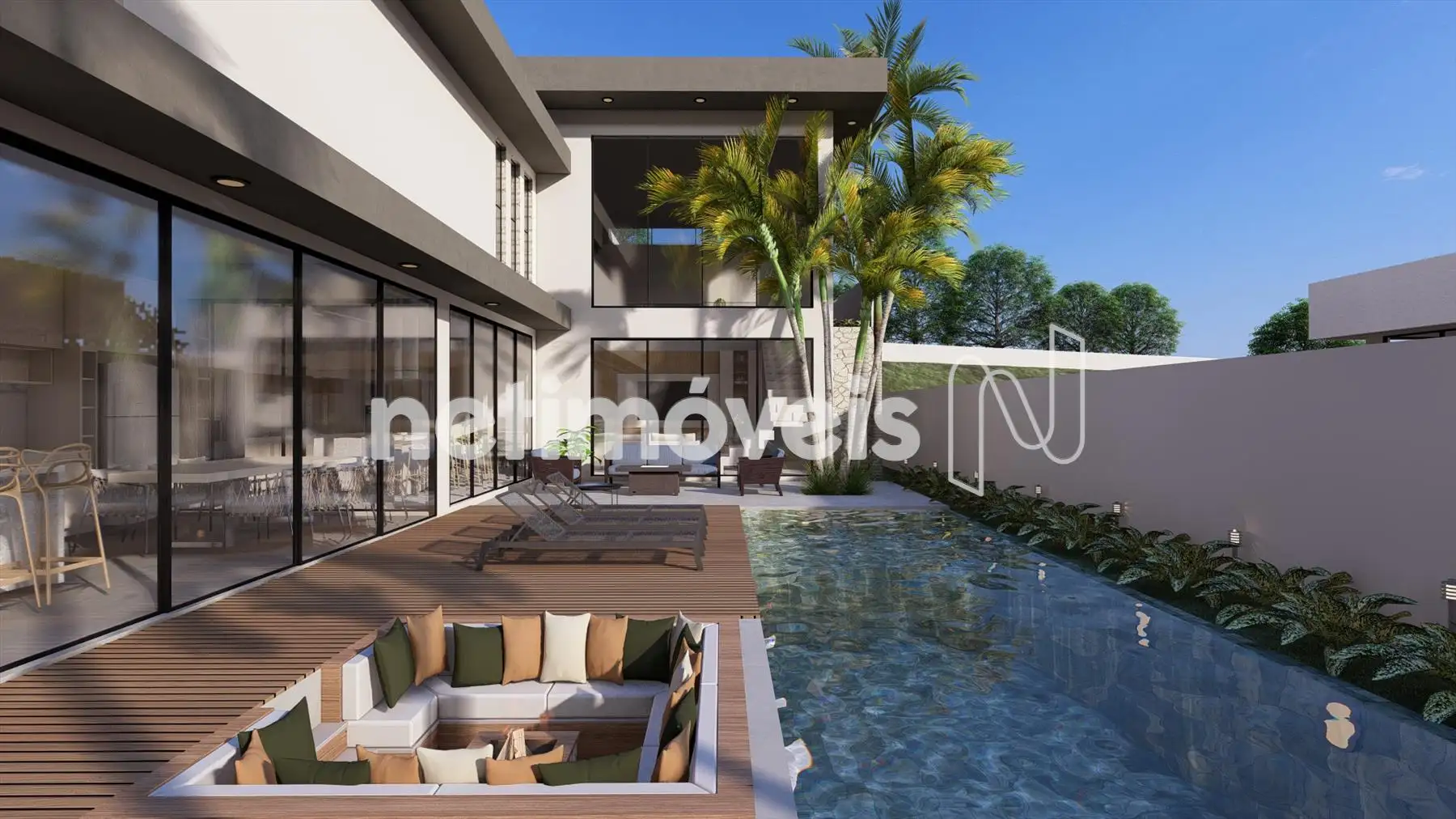 Estar intimo, 2 lavabos interno e externo, sala com dois ambientes, cozinha integrada ao espaço gourmet, piscina integrada ao espaço gourmet.