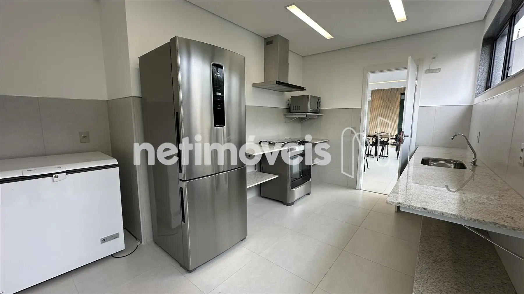 - Cozinha americana com bancada em granito;