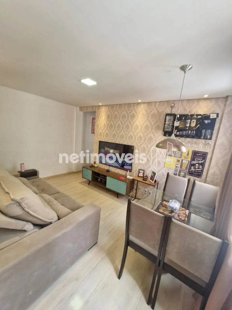 O apartamento possui 2 quartos amplos, ambos com armários planejados. A sala é espaçosa e bem iluminada, com espaço para 2 ambientes e teto rebaixado em gesso. O banheiro social é completo, com revestimento até o teto, box blindex e armário. A cozinha é arejada e equipada com bancada, cooktop e armários planejados, e conta com grades nas janelas para segurança.