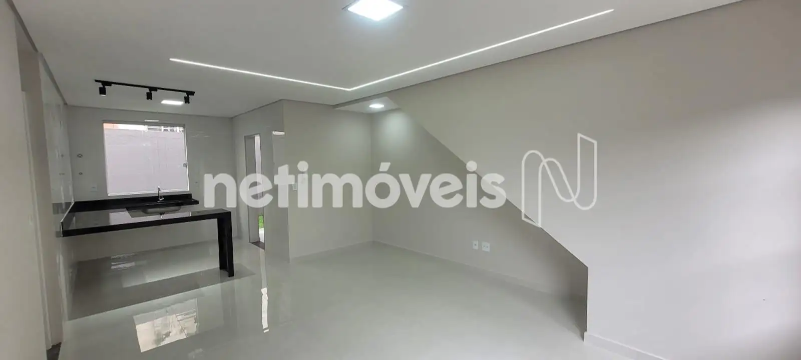 • Cozinha americana com acabamento em porcelanato, teto rebaixado e iluminação em LED