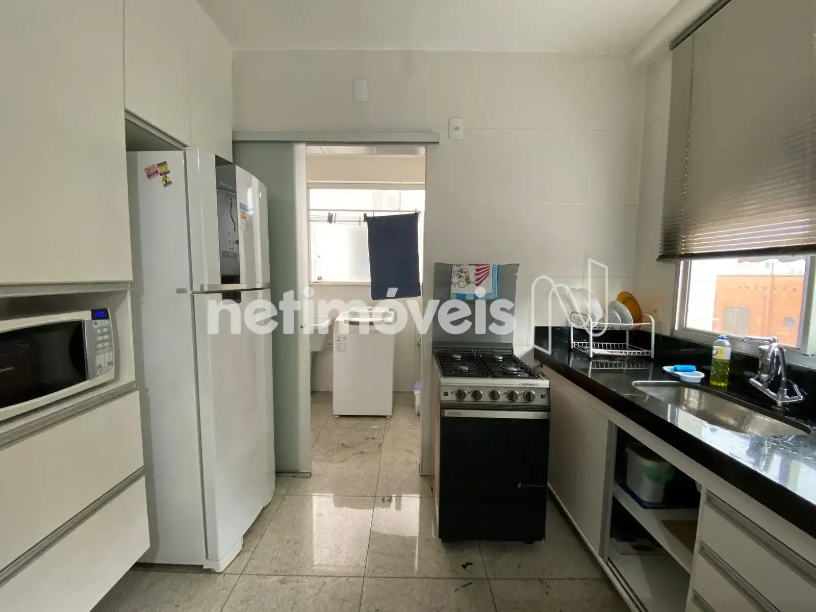 - Cozinha em estilo americano com bancada em granito, armários e piso em granito;