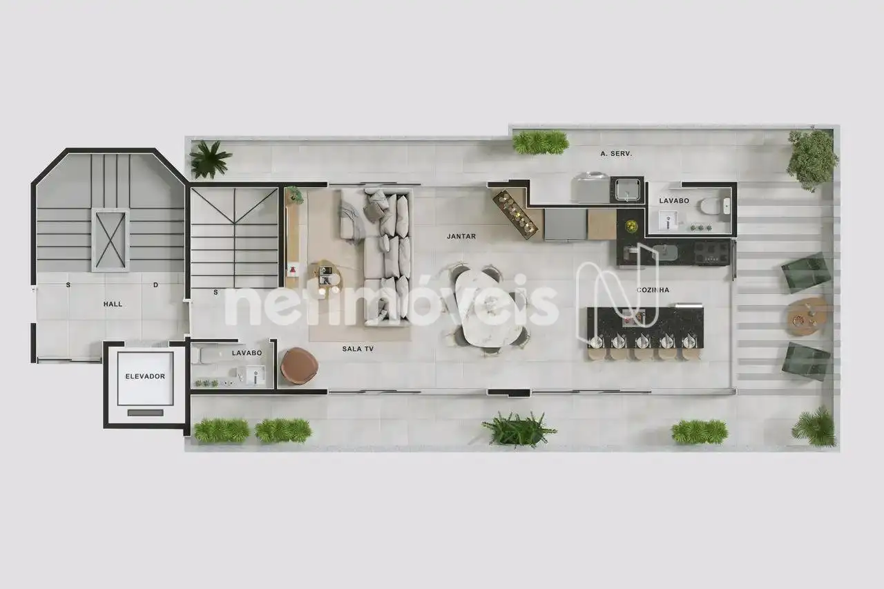 A cobertura possui 154 m², com acabamento de alto padrão e um projeto que privilegia o bem-estar e a funcionalidade. São 03 quartos, sendo 01 suíte, além de 04 banheiros ao todo e um lavabo. Acesso ao segundo pavimento por elevador.