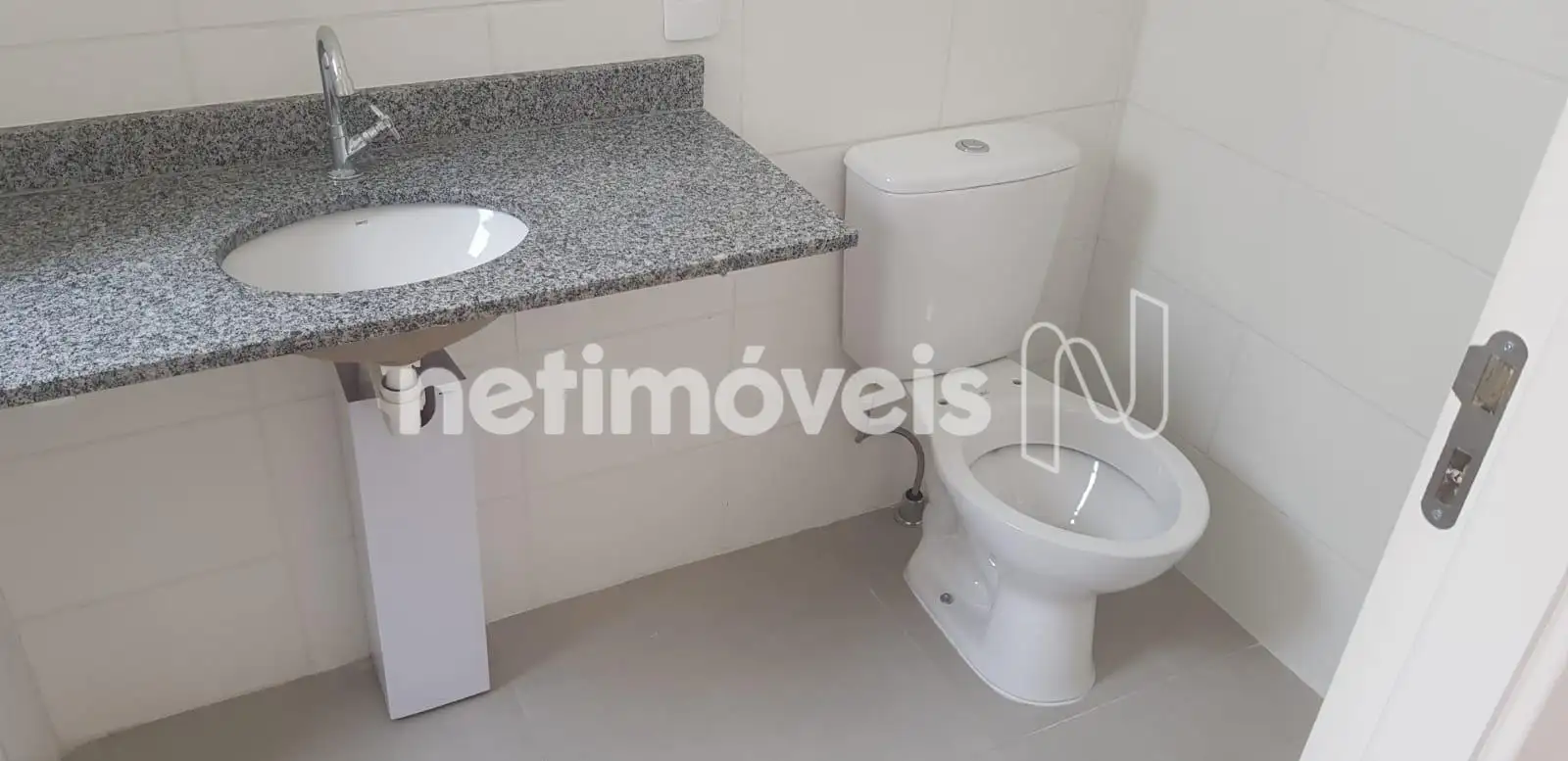 - Banho social, com bancada em granito e box de vidro temperado.