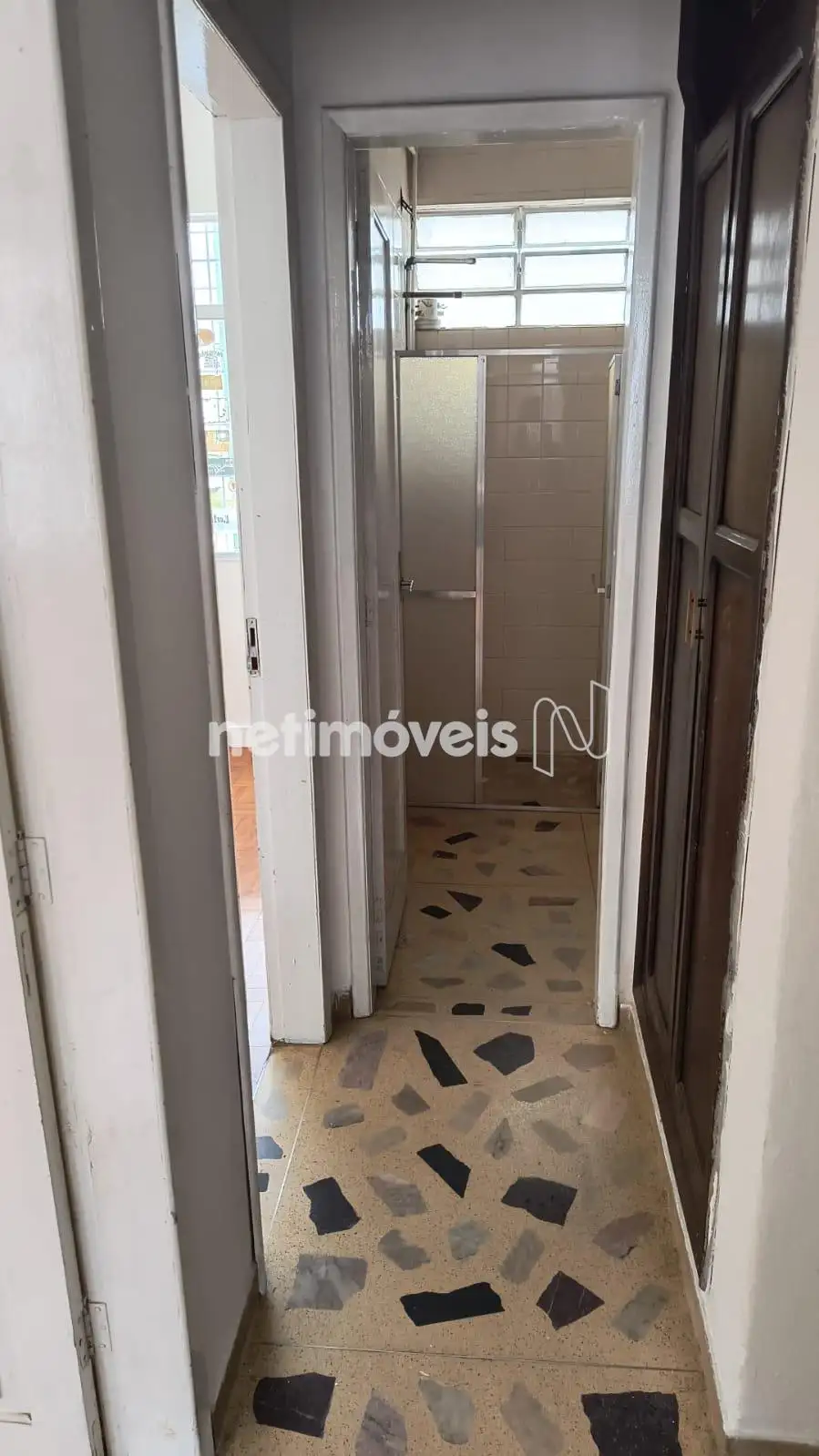 No corredor tem um armário estilo um roupeiro.