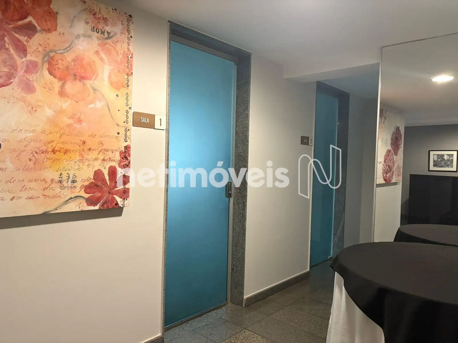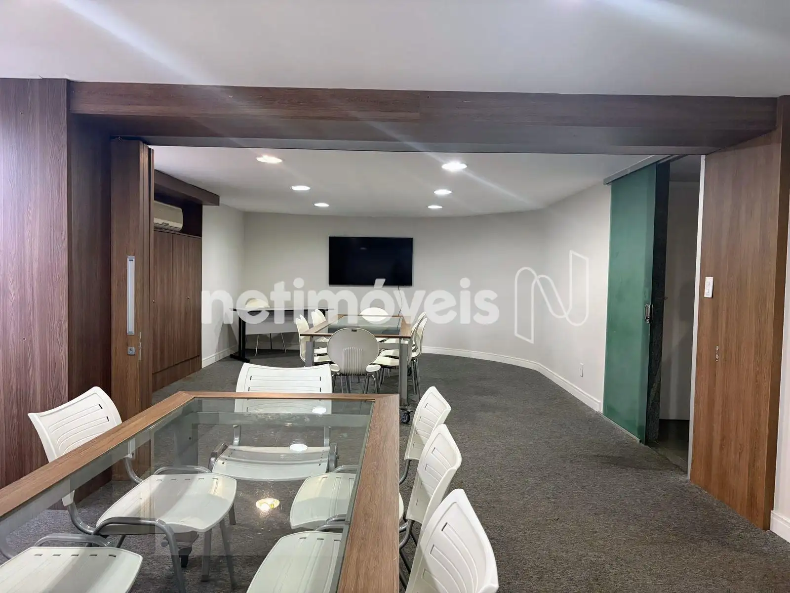 Duas salas multimeios mobiliadas (cadeiras, mesa, tv e 2 banheiros - masculino e feminino).