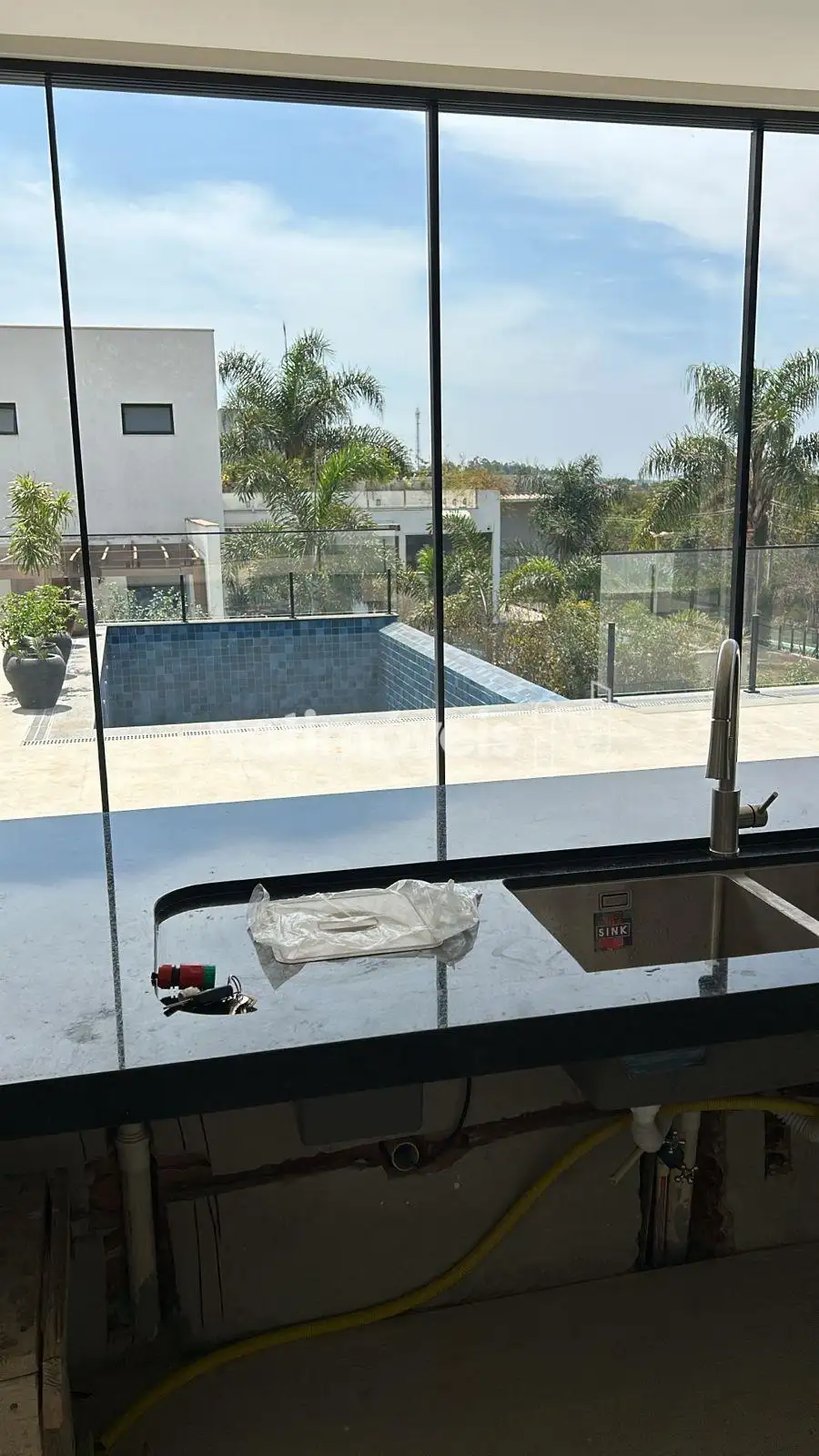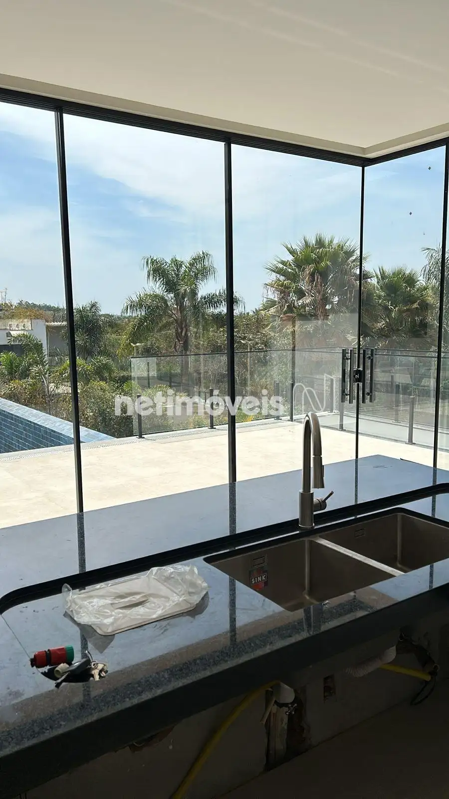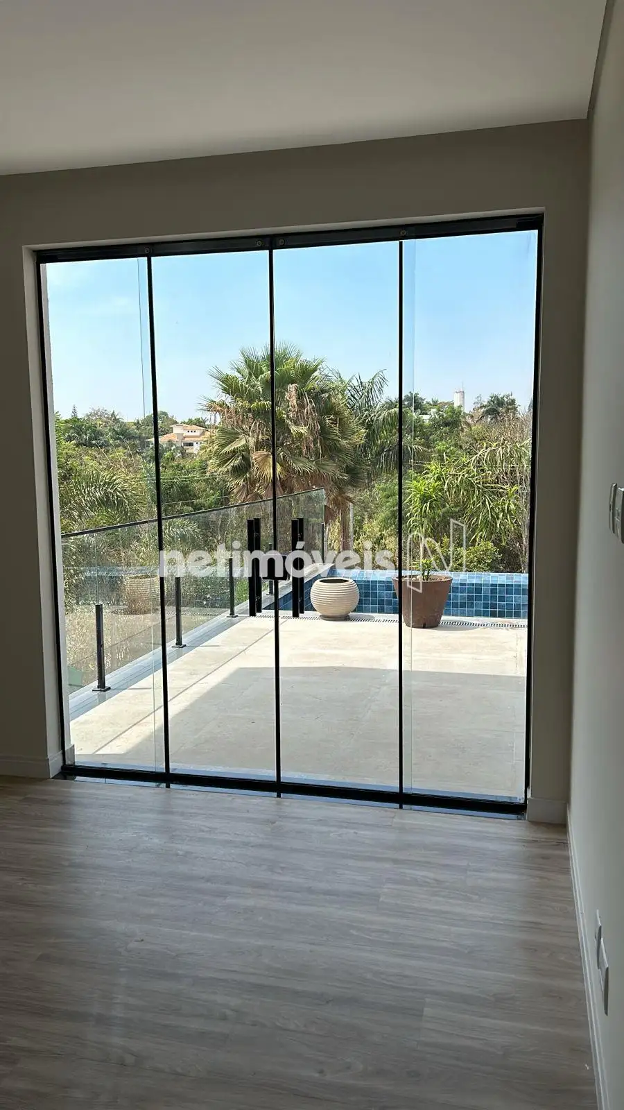 Guarda corpo e todo o fechamento em vidro temperado.