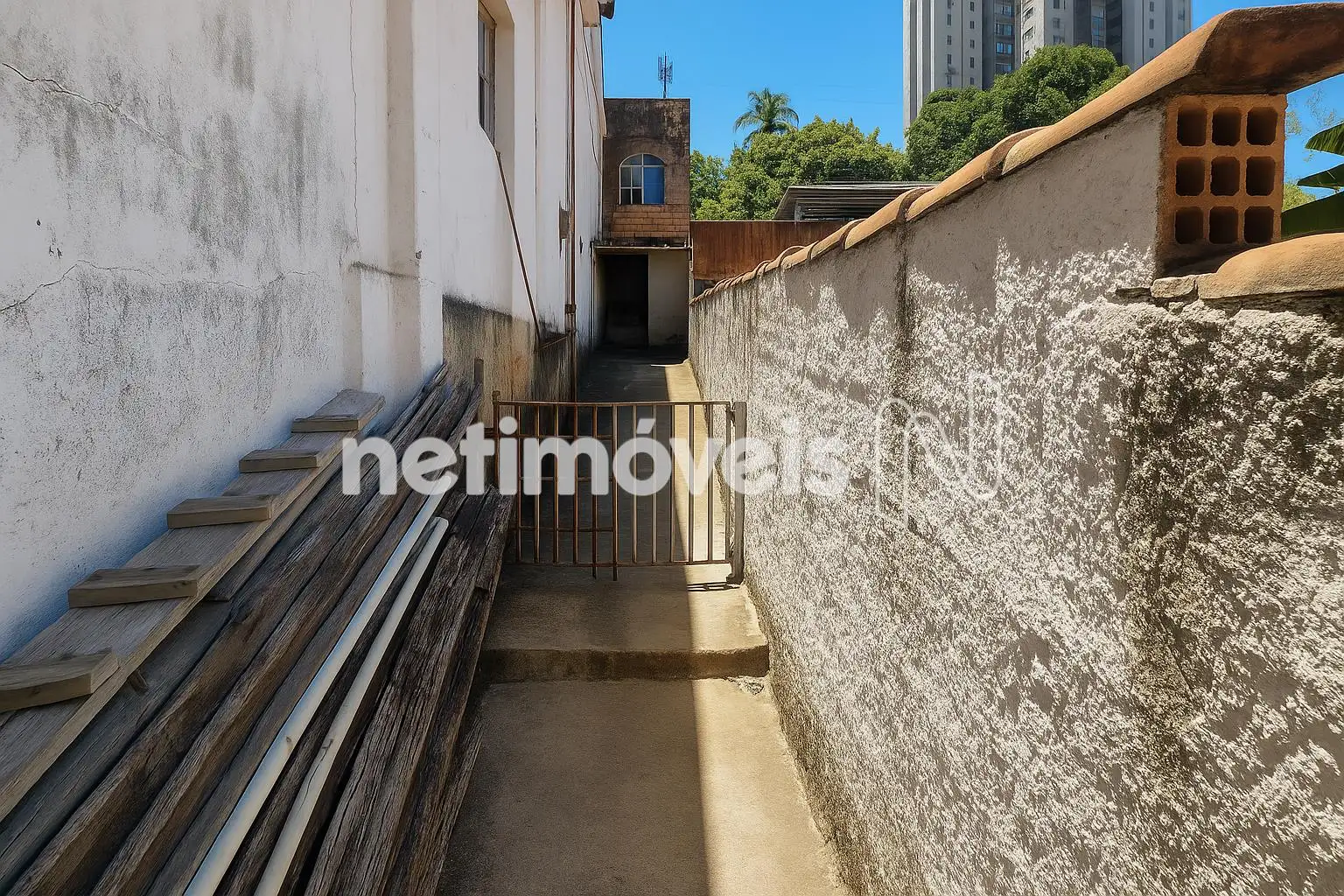 O terreno é composto por dois lotes murados, sendo um deles com benfeitorias e frente para rua principal, oferecendo acesso fácil tanto para pedestres quanto para veículos.