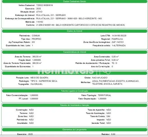 Rua Atalaia, Serrano - Belo Horizonte/Mg