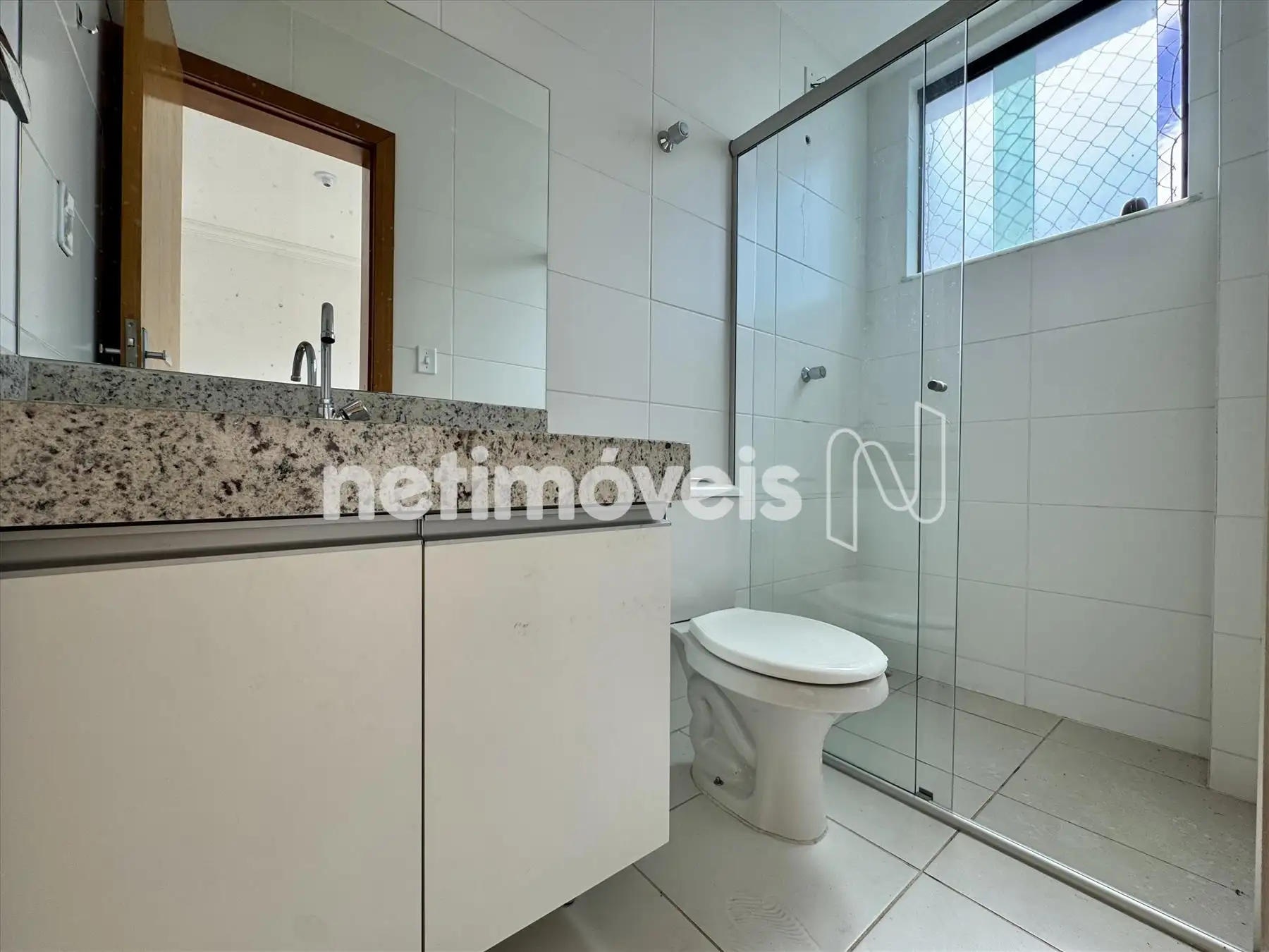 - Banheiro social com armário planejado e box blindex;