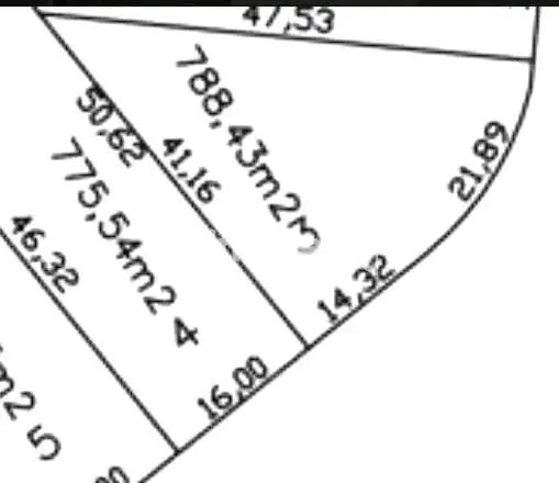 O lote é em formato de triangulo, sendo, 35m2 de frente, 47.53m2 do lado direito e 41.6m2 do lado esquerdo. O lote proporciona área para uma excelente construção, com linda vista à sua frente.