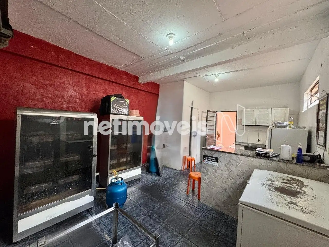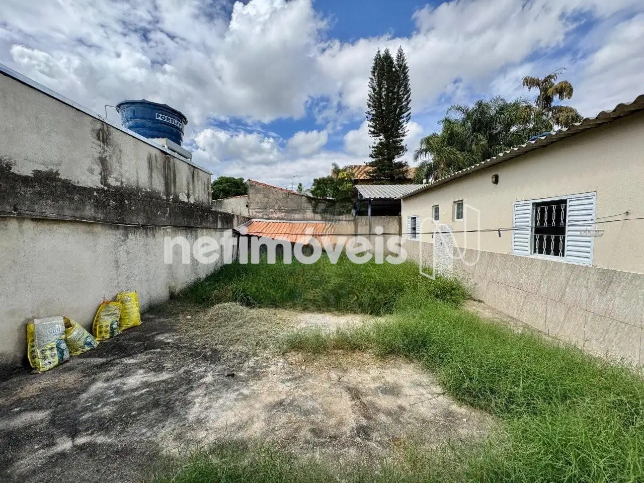 Construção existente de casas e lojas no terreno.