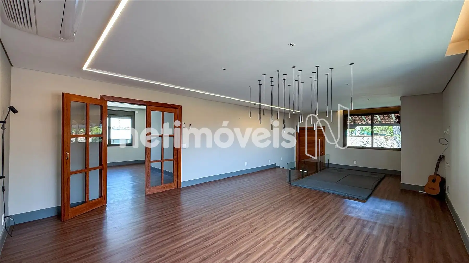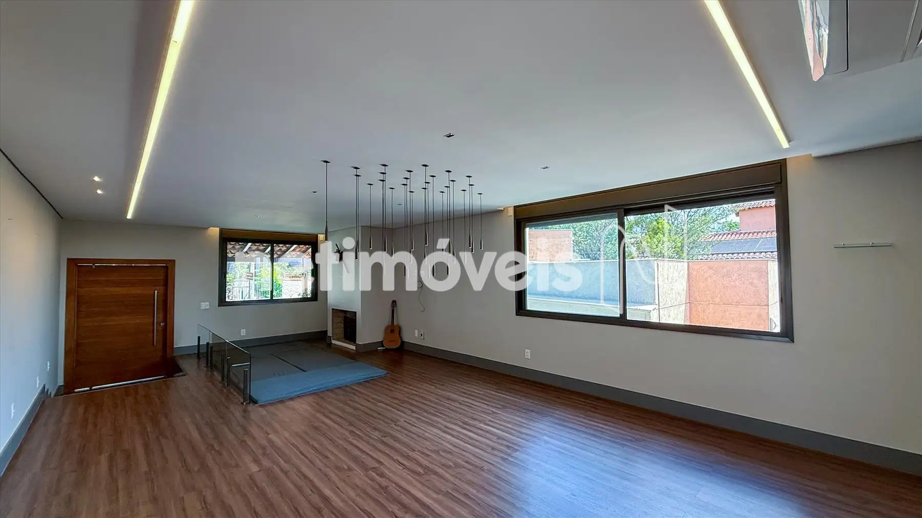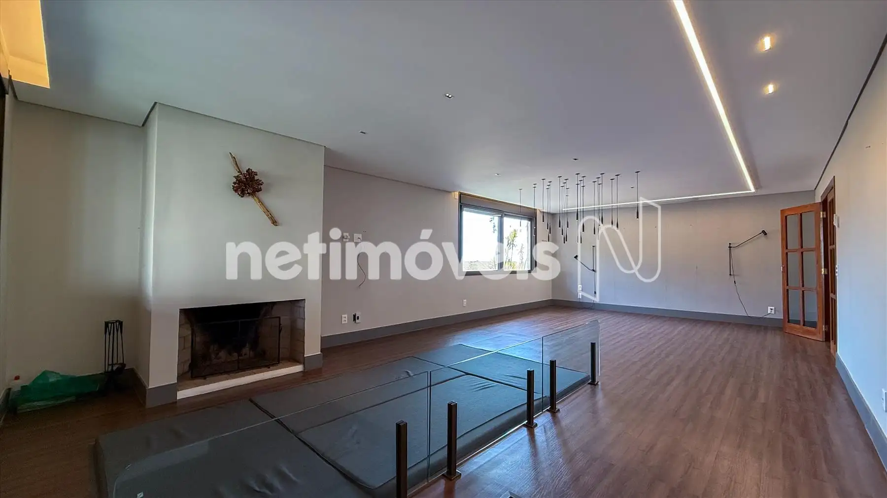 - sala grande p 2 ambientes, lareira, ar condicionado, piso vinílico, iluminação projetada,