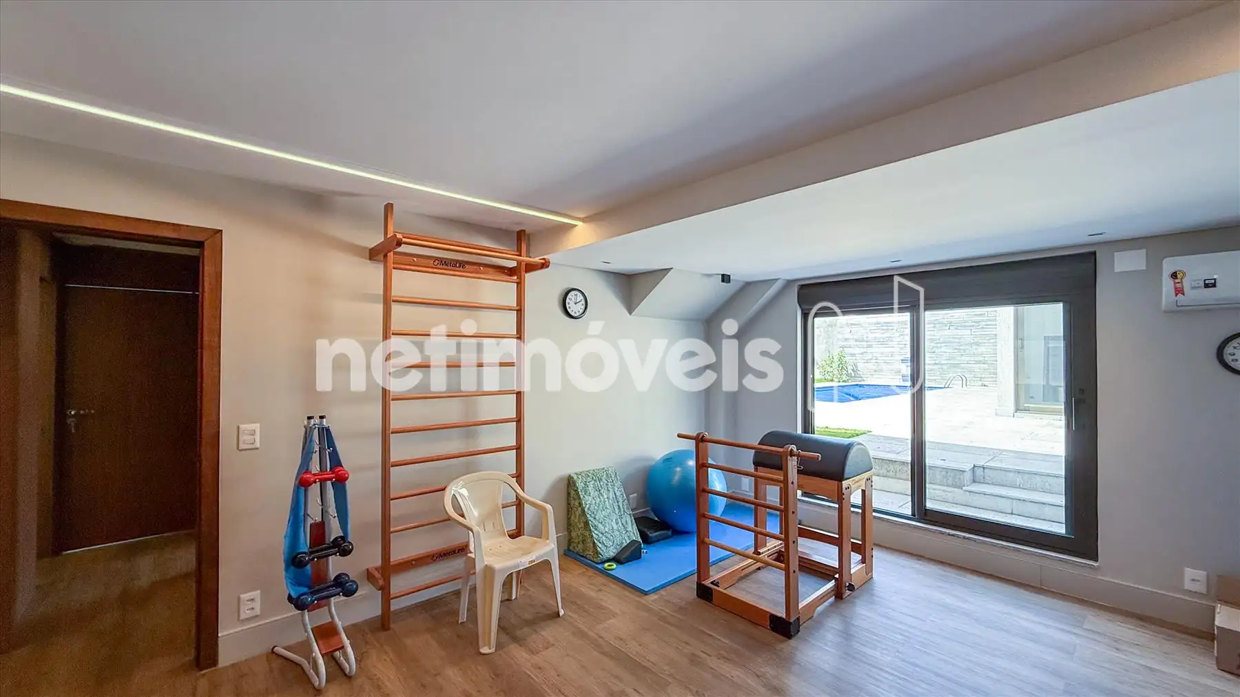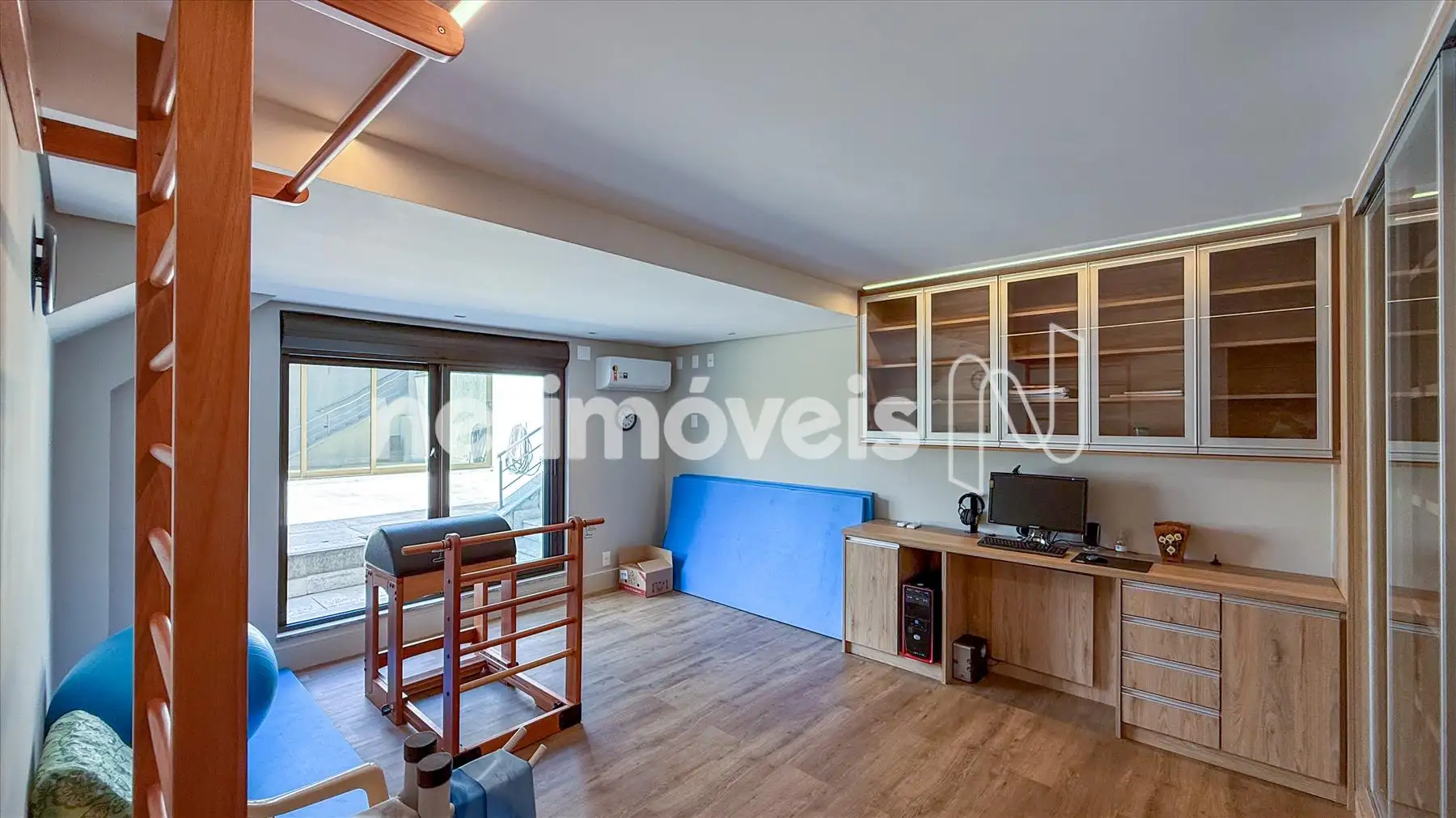 - Um quarto transformado em escritório/ academia